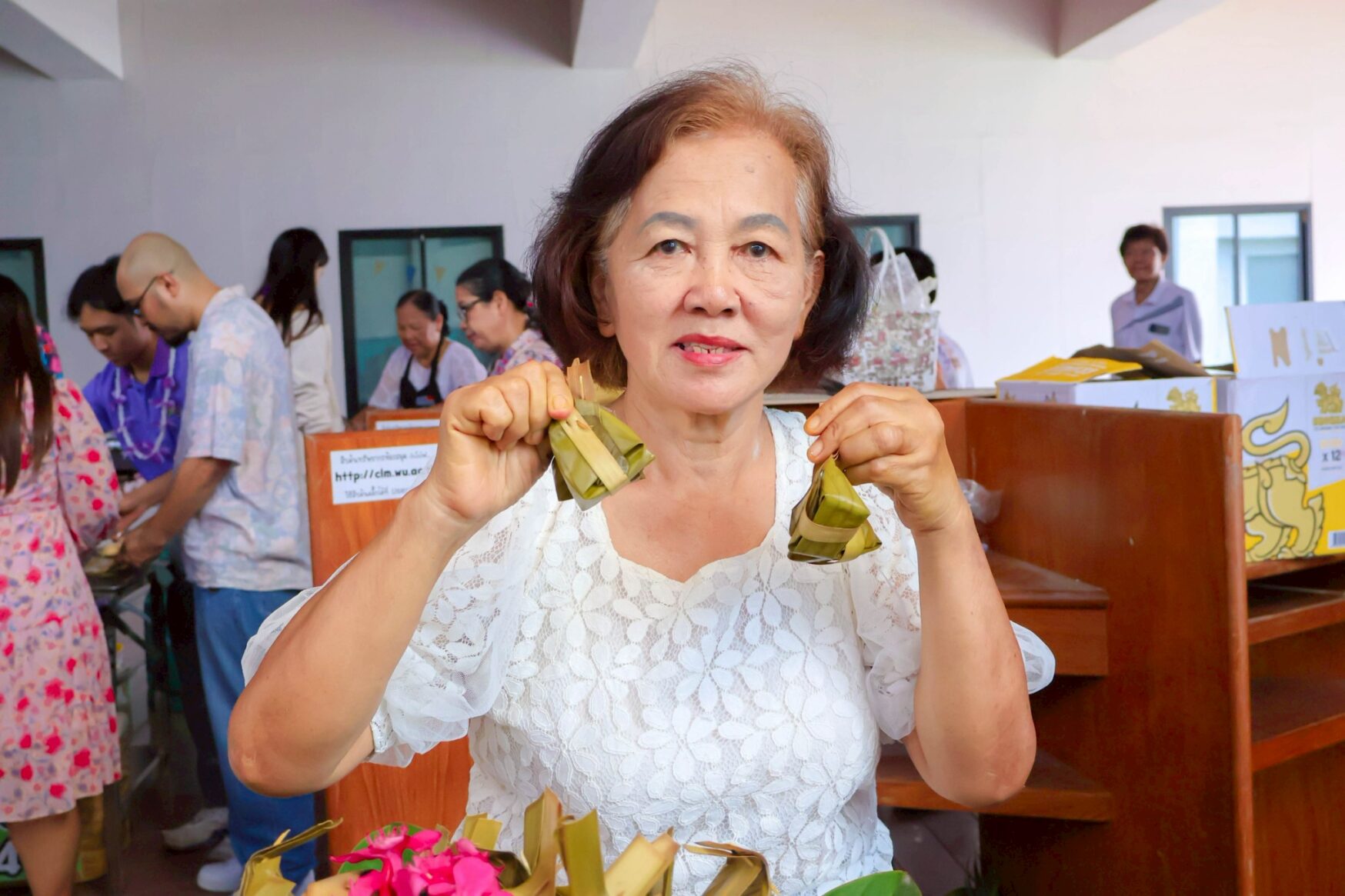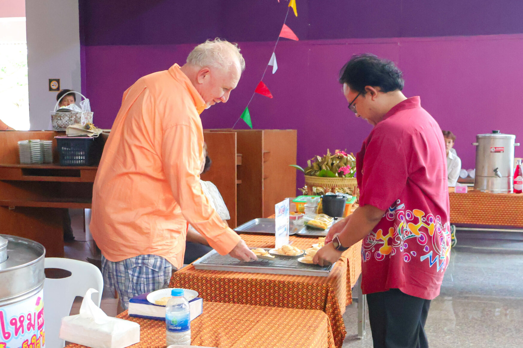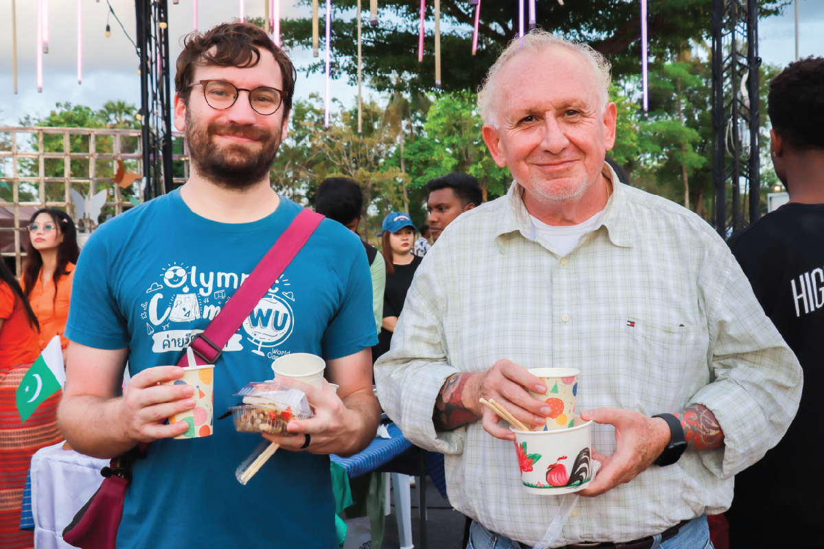 The WU Christian Club organized a cultural exchange activity featuring free tastings of Korean food, including dishes such as kimbap and tteokbokki, at the Chor Pradu Food Center. One of the objectives of this activity is to provide intervention to prevent or alleviate hunger among staff members who are not familiar with Thai food. A variety of food, especially those that are national dishes, must be available.