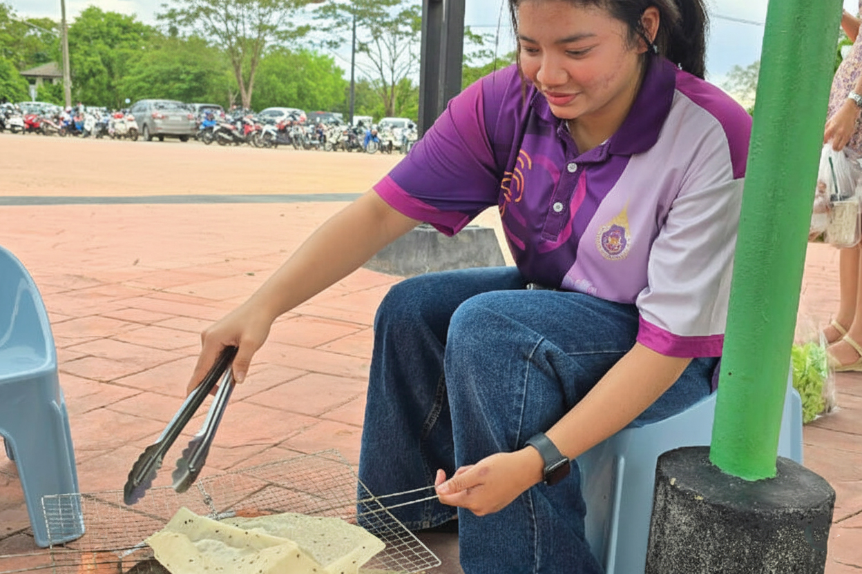The university has also carried out activities under the Academic Service Project and faculty research projects by organizing training sessions to transfer knowledge in food preparation, such as making kimchi and Thai rice noodle curry (Nam Ya Khanom Jeen). After the training, the prepared food was distributed free of charge to participants, including university staff and the general public.