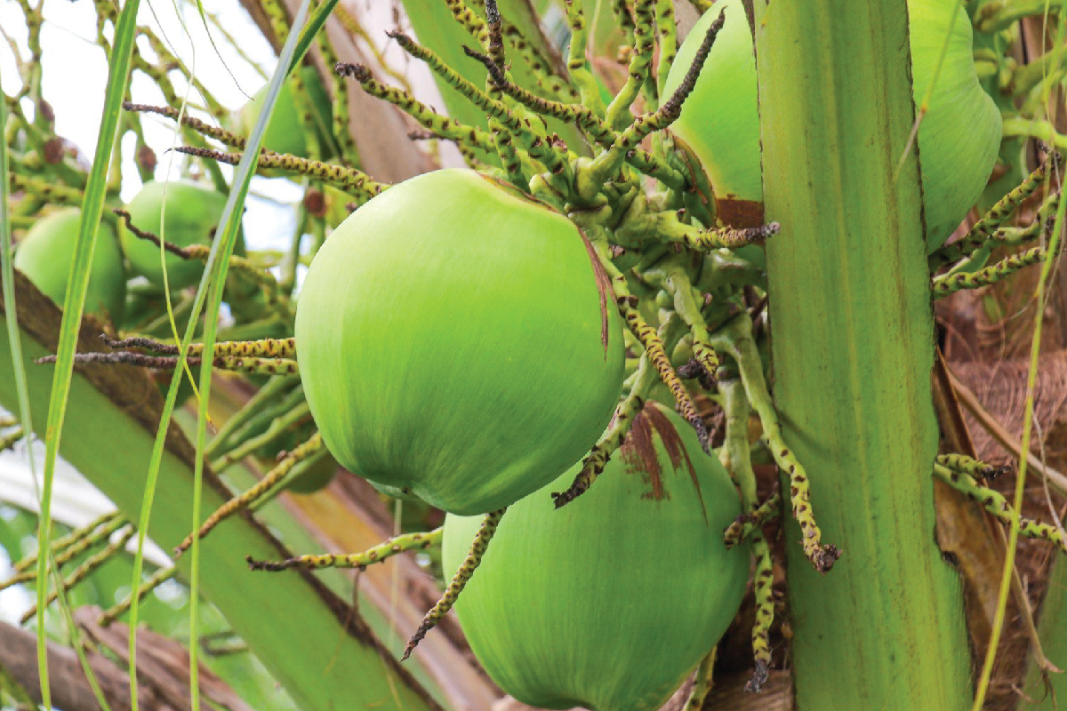 - Organic fruit trees, herbs, passion fruit, grapes, melons, and oil palm