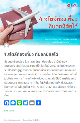 In the Travel category, there are a total of 40 articles (as of August 26, 2025), compiled from a variety of academic fields by Walailak University staff.
