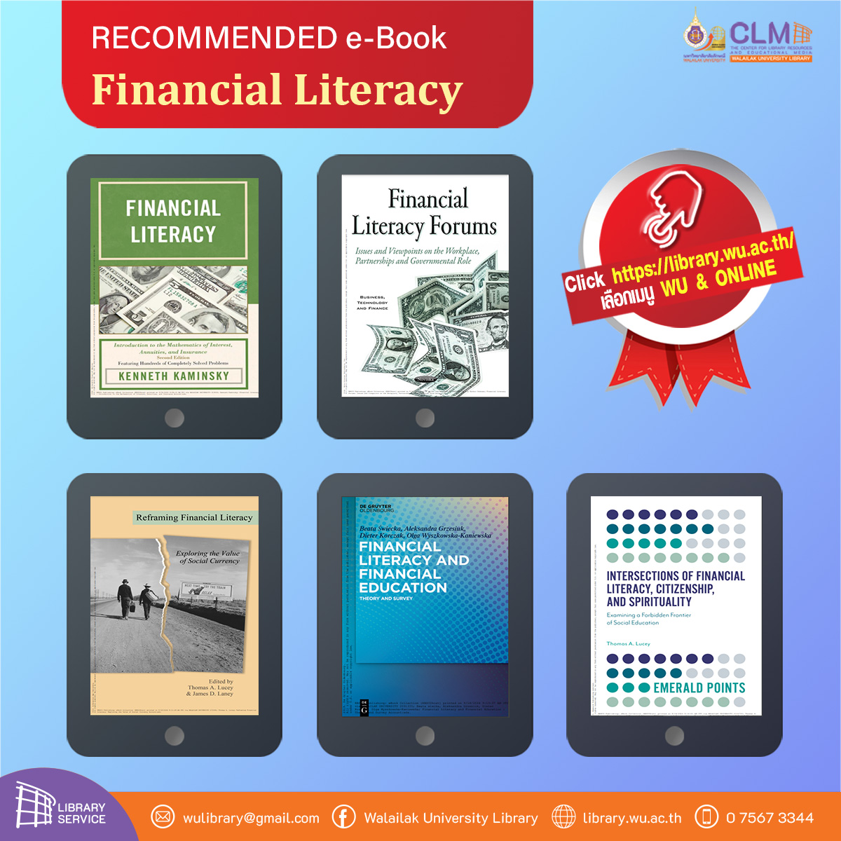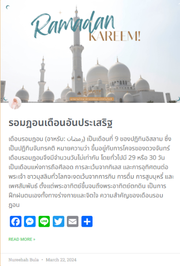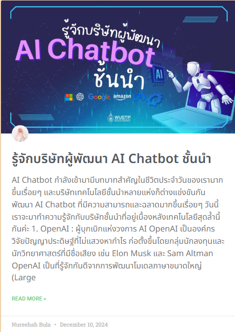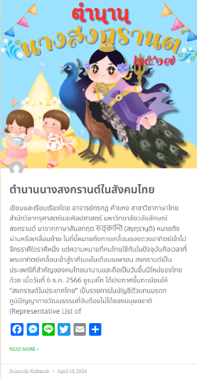 In the digital era, Walailak University has developed and shared free online resources accessible to everyone through the university’s website, supporting lifelong learning and continuous skill development. These resources include a research repository that compiles information and innovations for further application, as well as various online learning platforms from the Center for Library Resources and Educational Media, such as e-books, WU BLOGS, and a wide range of lecture videos. The content covers diverse fields such as education, health, IT articles, finance, entertainment, travel, sports, and commemorative days. All information is freely available at https://blog.wu.ac.th/, with more than 900 articles in total.