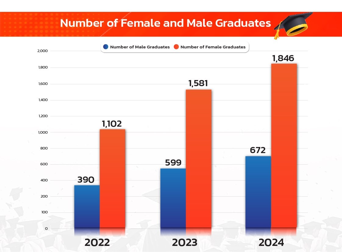 The Division of Student Support and Development has been working with the Center for Educational Services to develop schemes, interventions, or targeted mentoring programs designed to improve female students’ academic success and graduation outcomes and close all potential gaps causing the attrition rate.