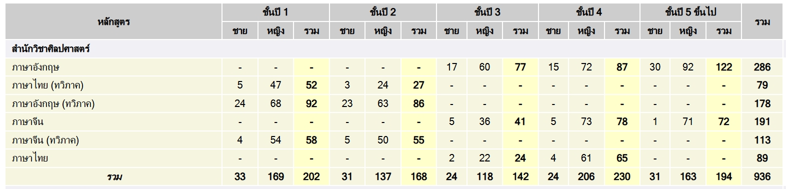 Walailak University systematically tracks the number of male and female students in each School. The data is organized by academic year, providing a clear picture of the trends in applicants, enrolled students, and graduates