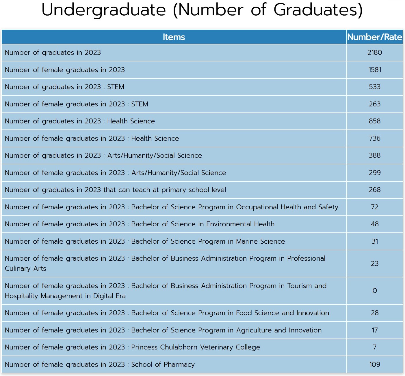 • Female Graduation Number: 1,581 (72.52%)