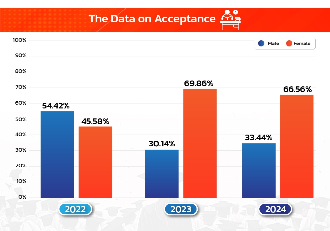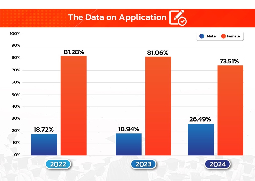 Each year, the CES website is updated with the latest data, reflecting Walailak University’s commitment to transparency, accountability, and continuous improvement. The statistics consistently show that female students make up the majority of applicants and enrollees, with their numbers steadily increasing year after year. This growth highlights the university’s success in advancing gender equity and creating an inclusive academic environment. Moreover, by openly sharing this data, Walailak University demonstrates its dedication to evidence-based decision-making and its role in supporting broader societal progress toward equal opportunities in higher education.