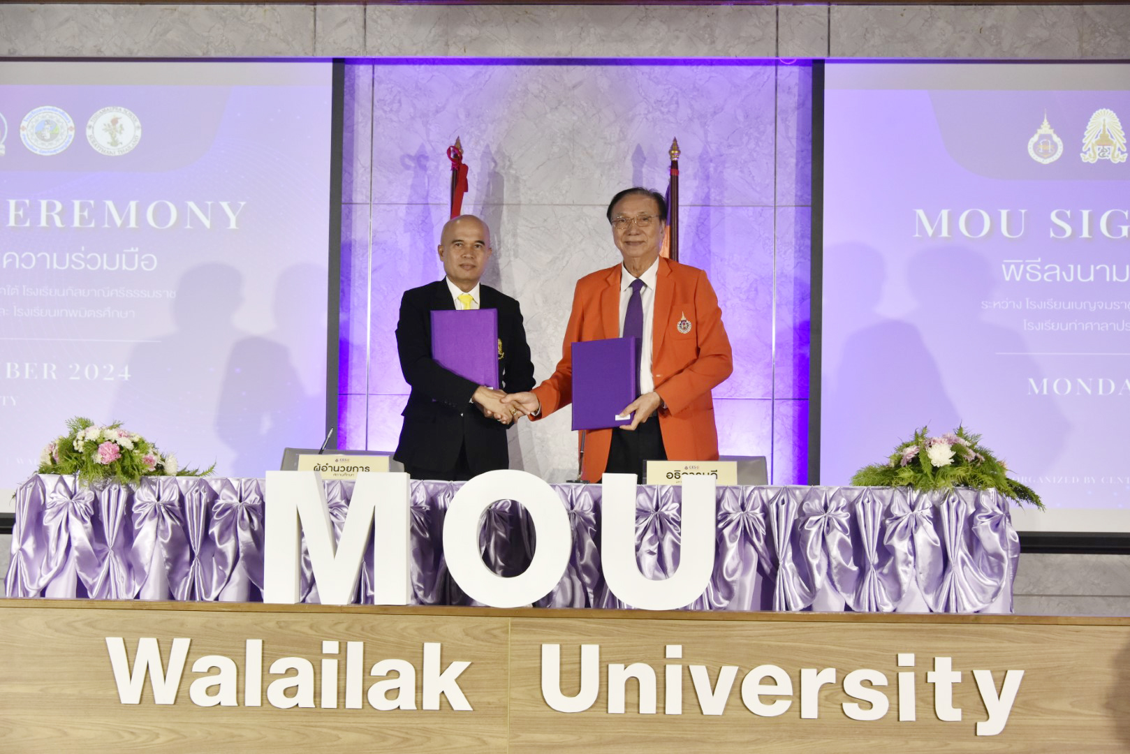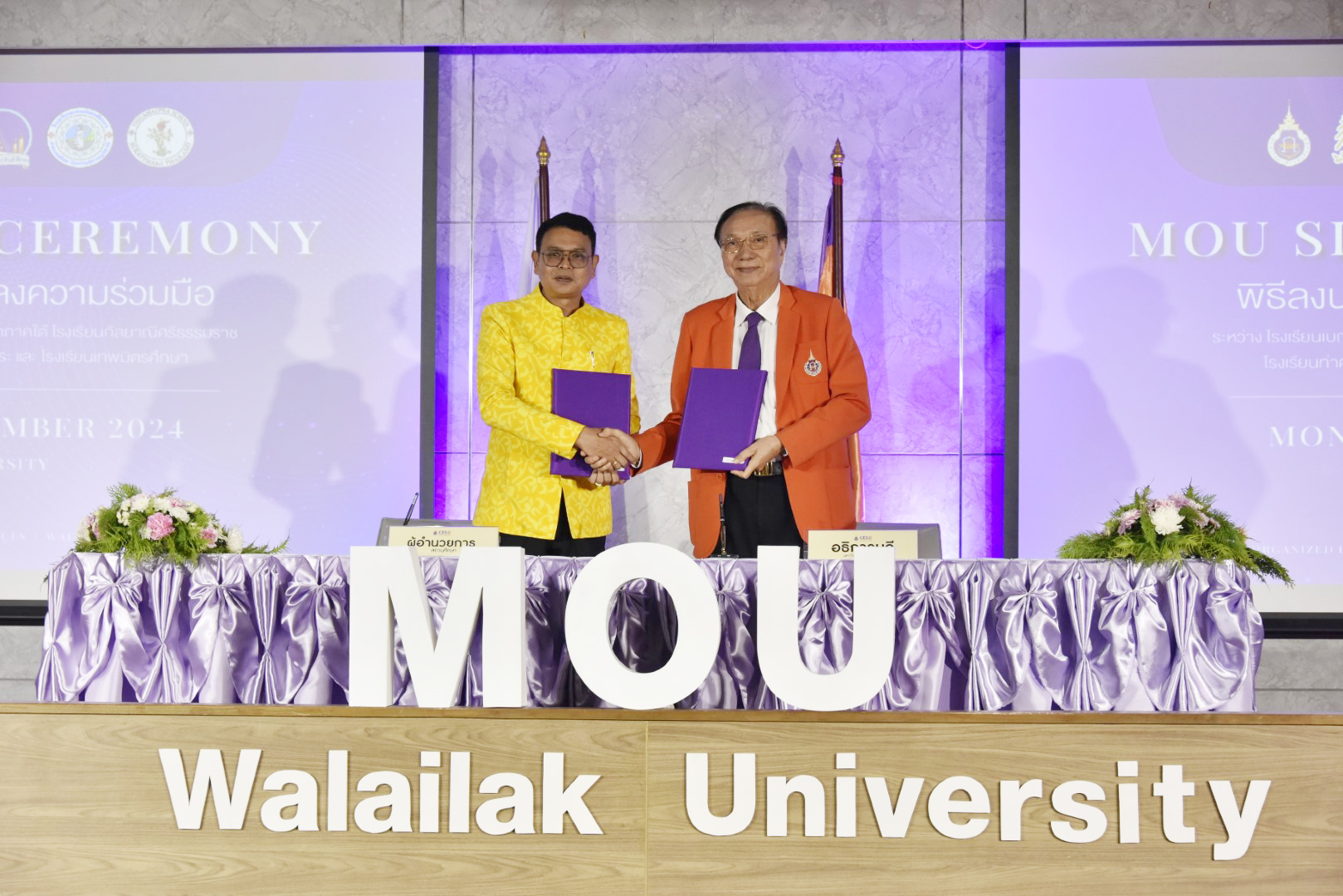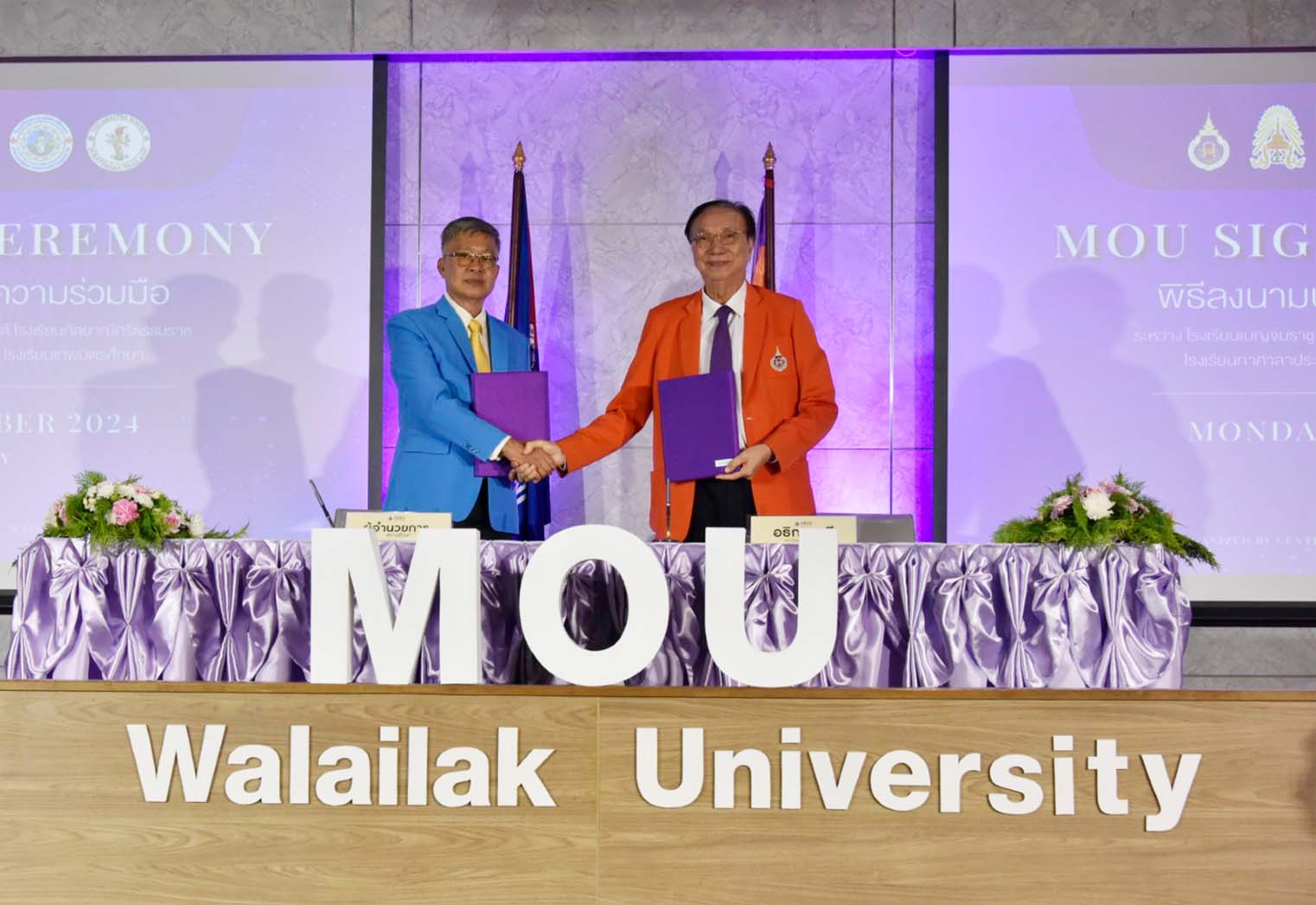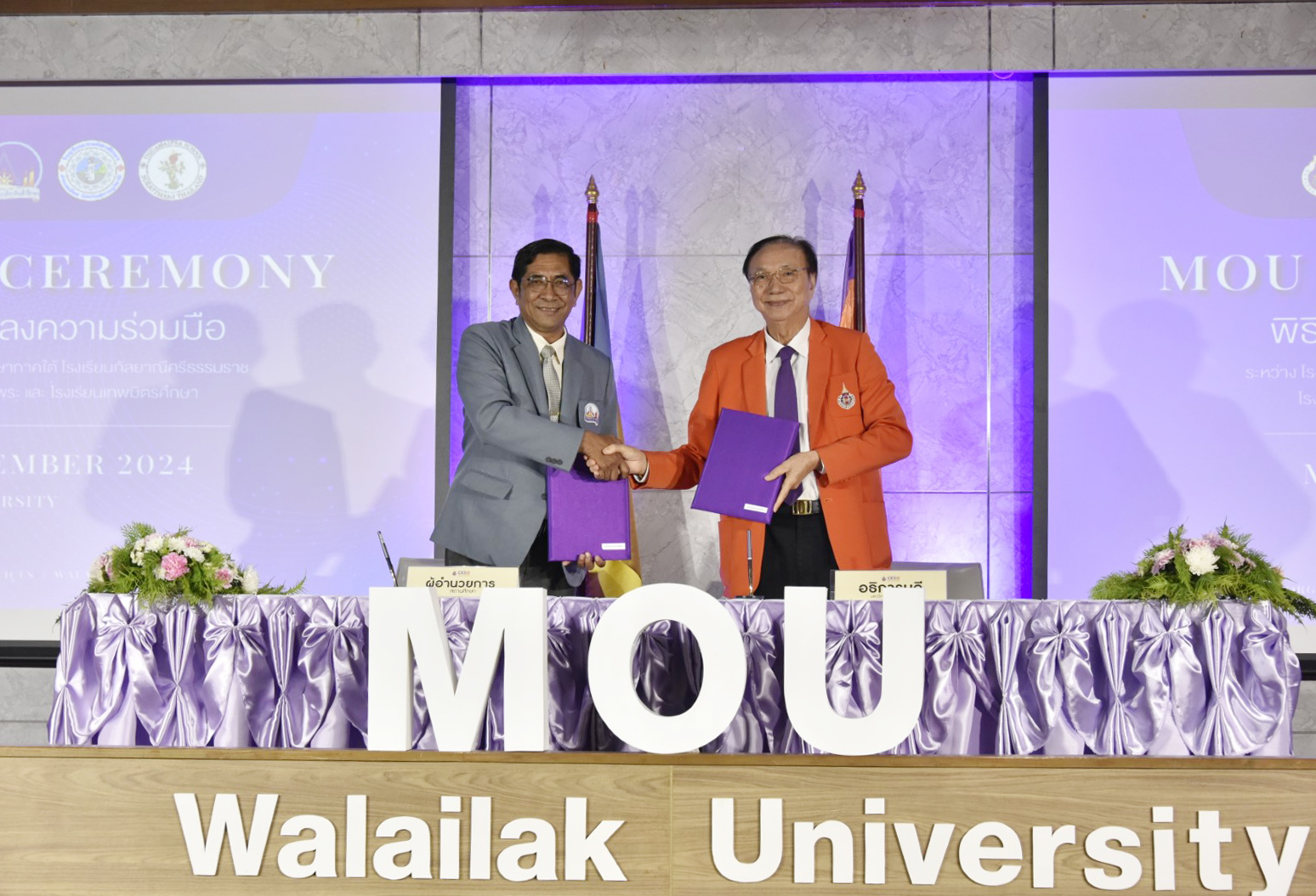 In 2024, Walailak University signed Memoranda of Understanding (MOUs) with six secondary schools—two private and four public institutions—from Nakhon Si Thammarat and Surat Thani provinces. These schools included Thepmitrsuksa School, Thidamaepra School, Benjamarachutit Nakhon Si Thammarat School, Tha Sala Prasitsuksa School, Triamudom Suksa School of the South, and Kanlayanee Si Thammarat School. The primary objective of these MOUs was to enhance the quality of education in partner schools and prepare students for successful transitions to higher education.