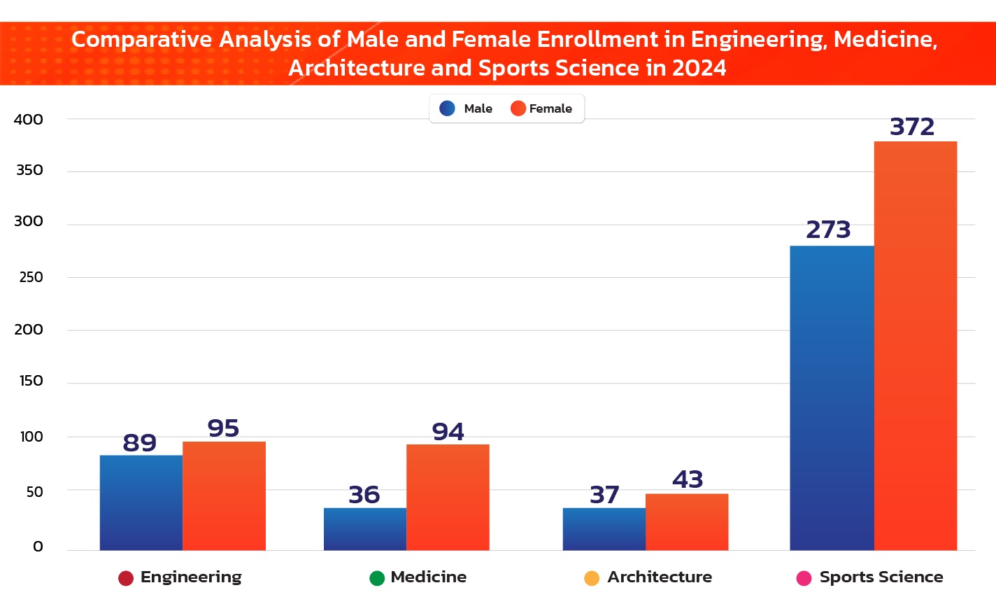 According to a 2021 UNESCO report, women represent only 28% of engineering graduates and 40% of graduates in computer science and informatics globally. At Walailak University, Sports Science and Excercise is also identified as a field of the School of Science where women remain underrepresented.