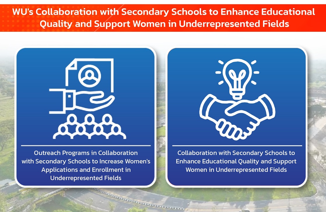To further address gender disparities, Walailak University has developed and organized a series of outreach activities aimed at inspiring female students to pursue careers in underrepresented fields. WU recognizes that women remain underrepresented in areas such as engineering, architecture, and medicine, partly due to societal perceptions, particularly in Thai culture, that these fields are more suited to men.