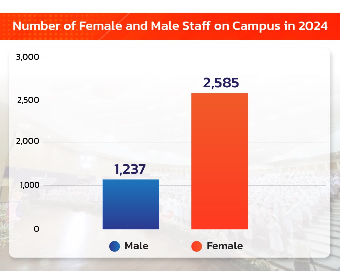 In 2024, Walailak University employed a total of 3,822 staff members, representing a 38% increase compared to 2023. This growth was driven by the establishment of new departments within the university.