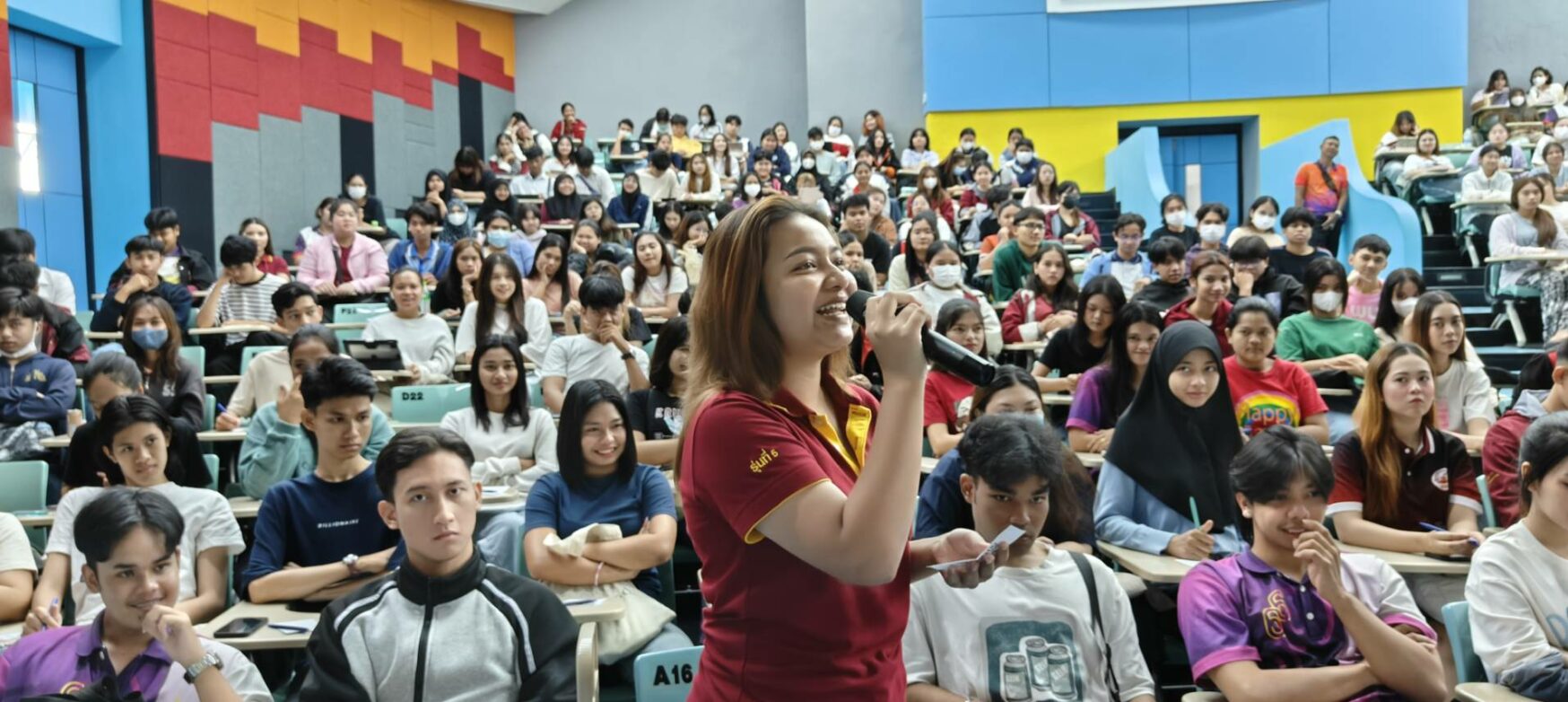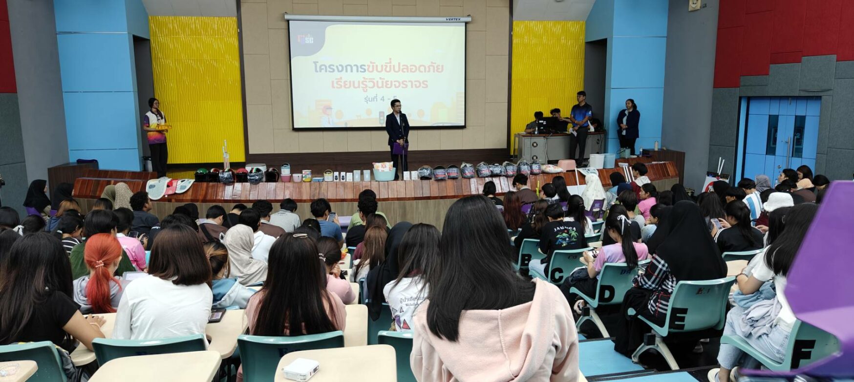The Division of Student Support and Development organized a workshop called “Commentator Gen 1,” designed to enhance female students’ public speaking skills and build their confidence in addressing audiences. Recognizing that some female students may lack the courage to speak publicly, the workshop was initiated as a foundational activity to foster self-assurance and communication competence among female participants.