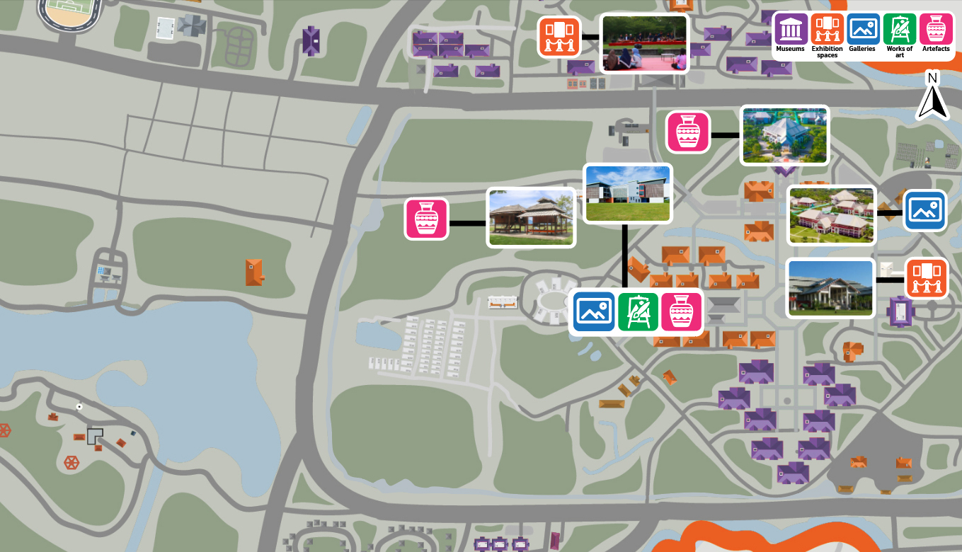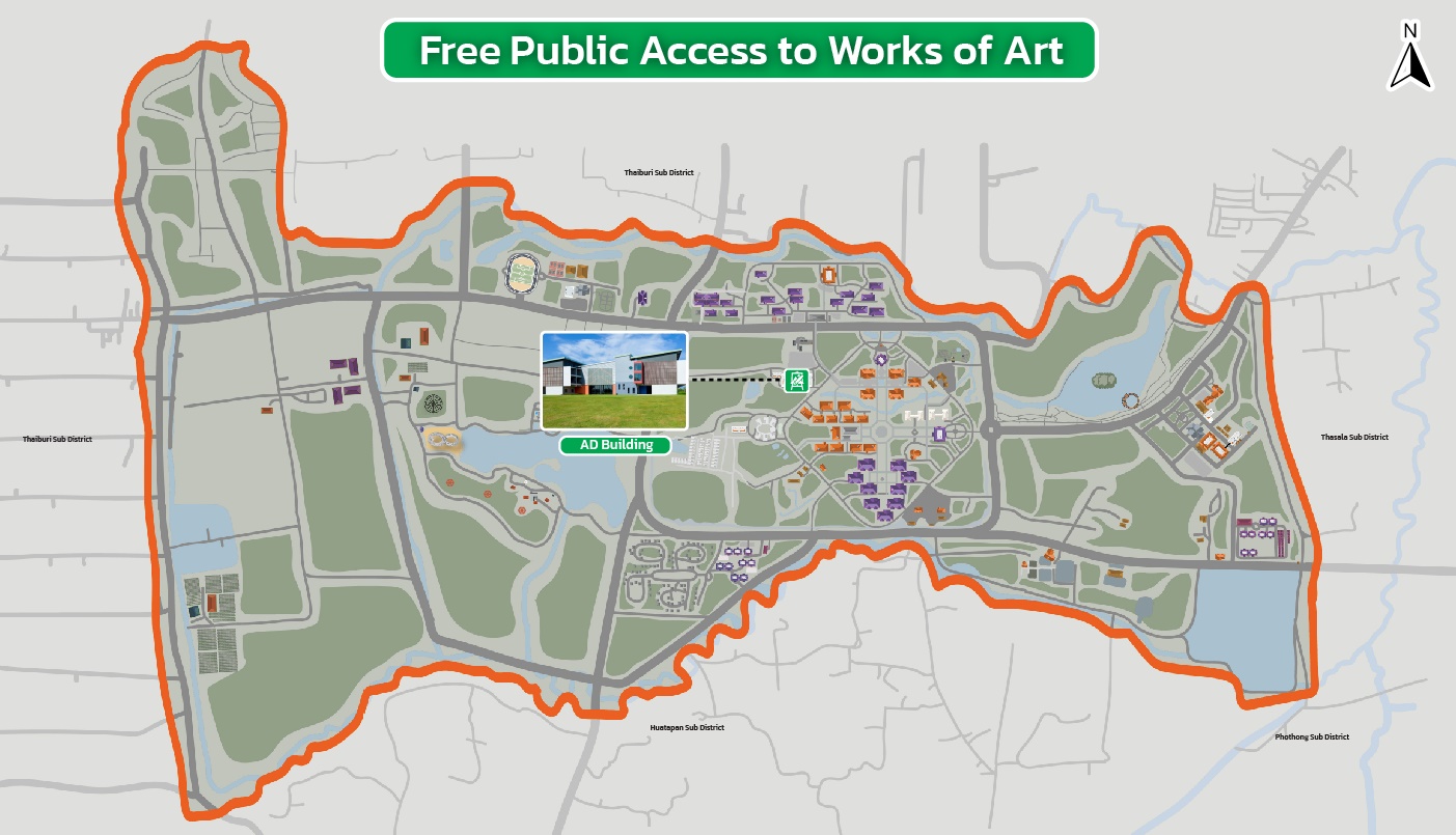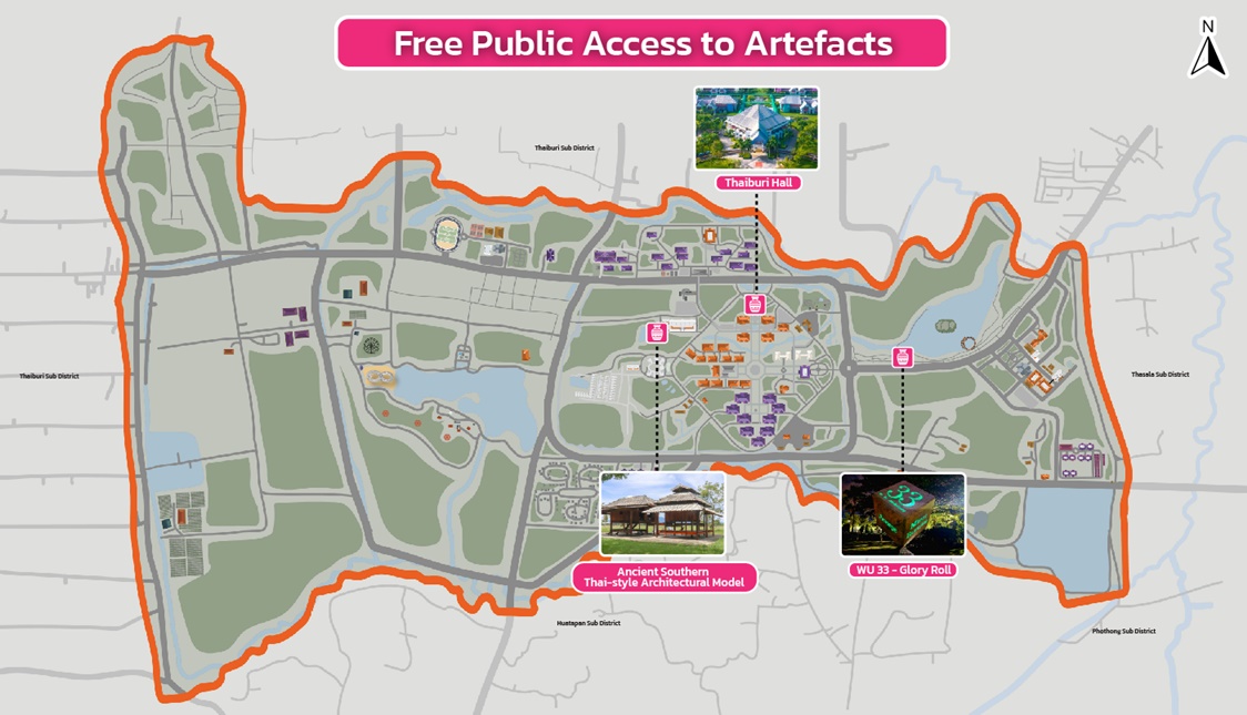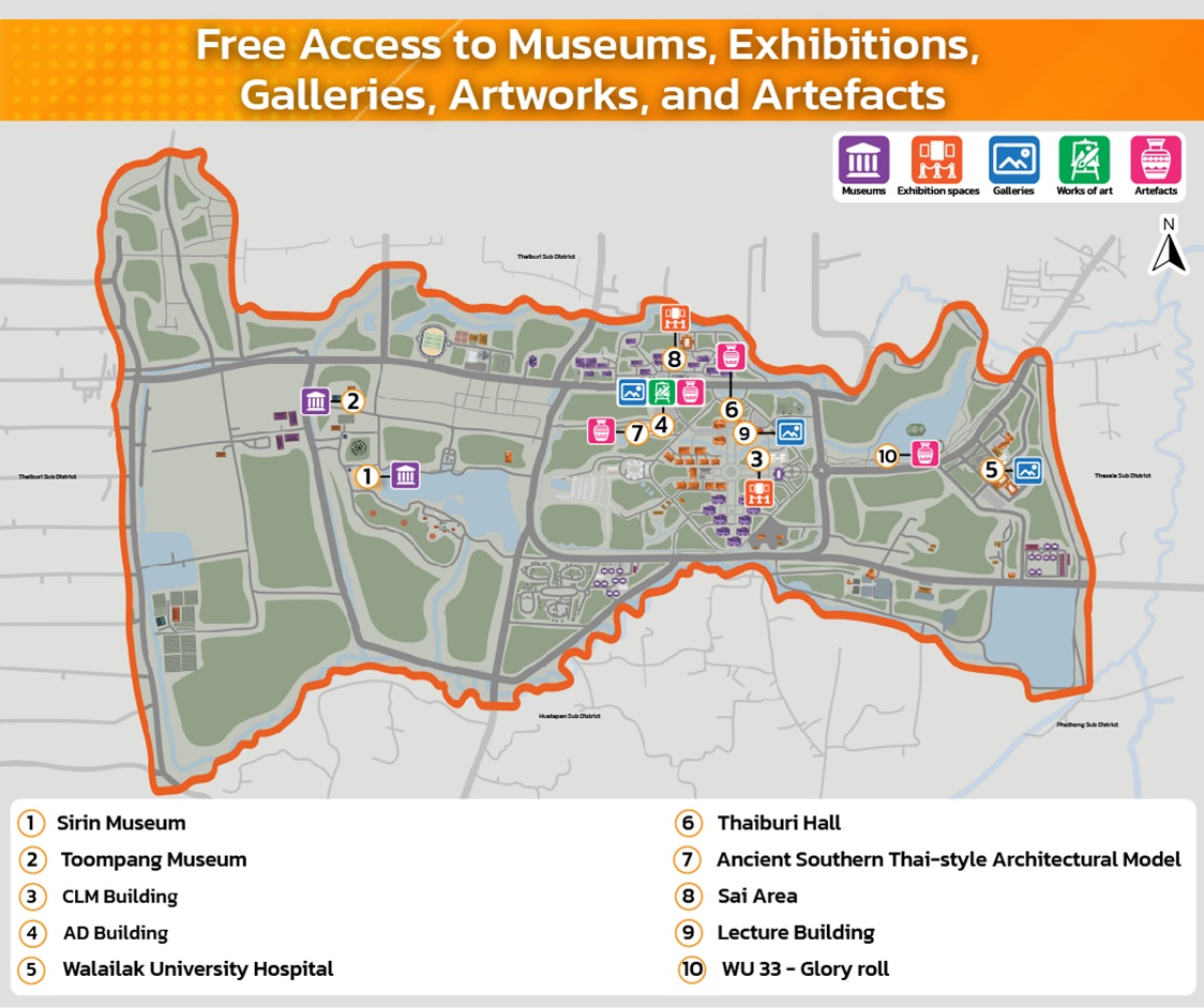 Figures : Map showing the areas of all museums, exhibition spaces, galleries, works of art, and artefacts at Walailak University with free access