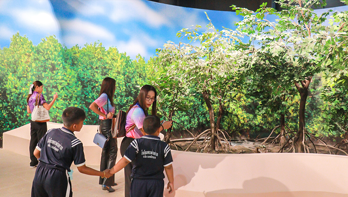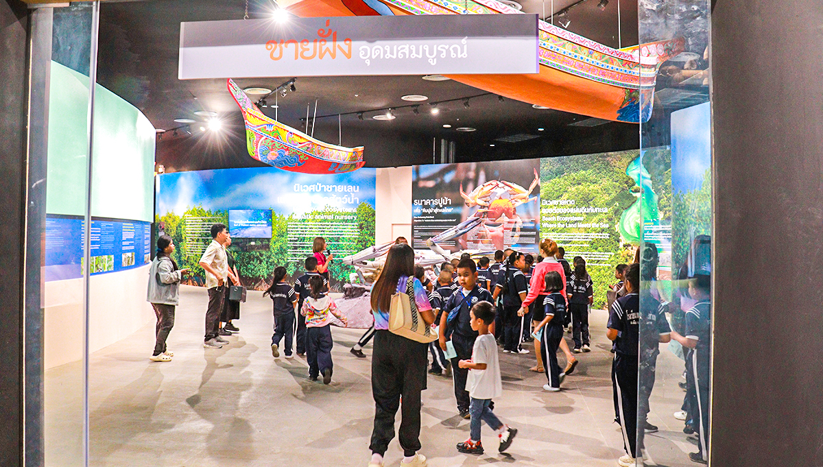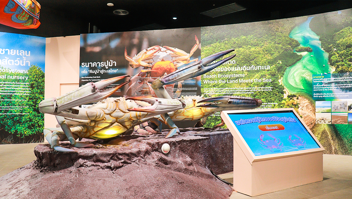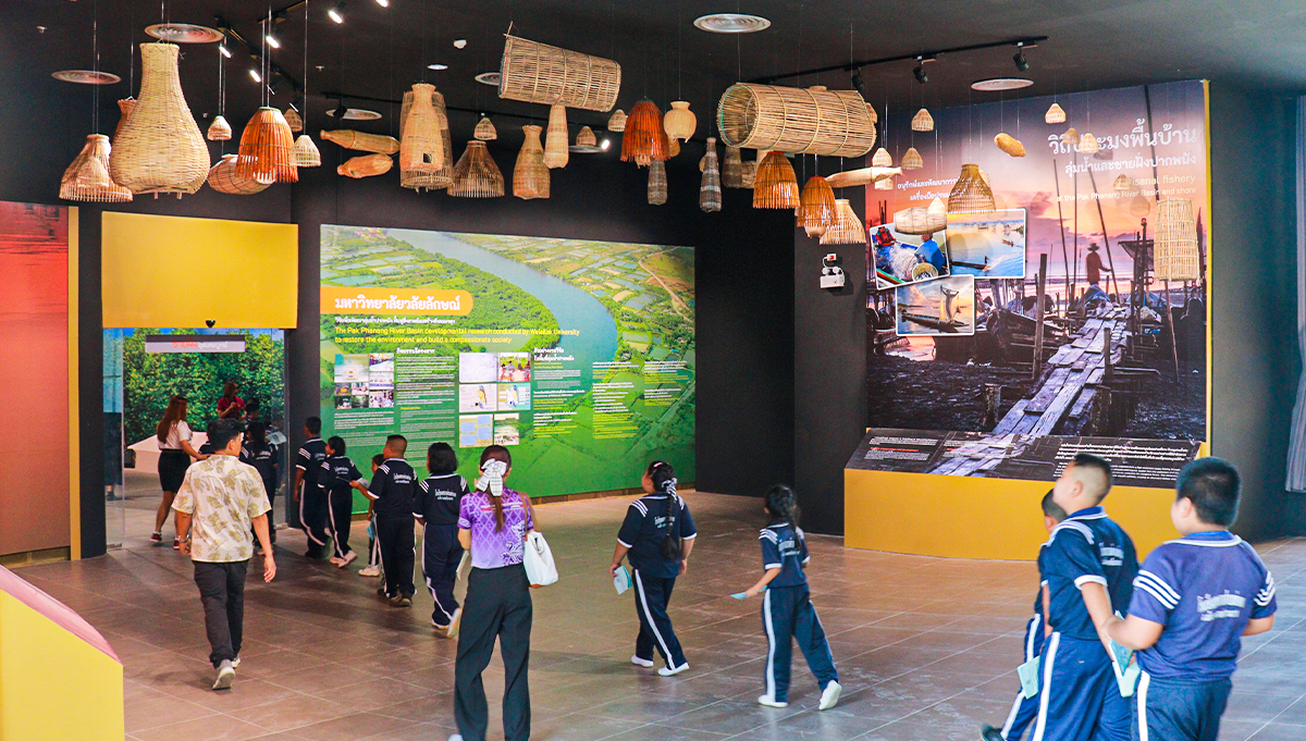 This exhibition presents the coastal ecosystems of the Gulf of Thailand, using multimedia displays and authentic objects. It features beach and mangrove forest ecosystems, native plant species, and real examples of local flora and fauna. The exhibit also includes photographs of coastal community lifestyles and highlights Walailak University’s academic services, such as the “Sustainable Blue Crab alongside the Thai Sea” project and marine biodiversity research along the Nakhon Si Thammarat coast.