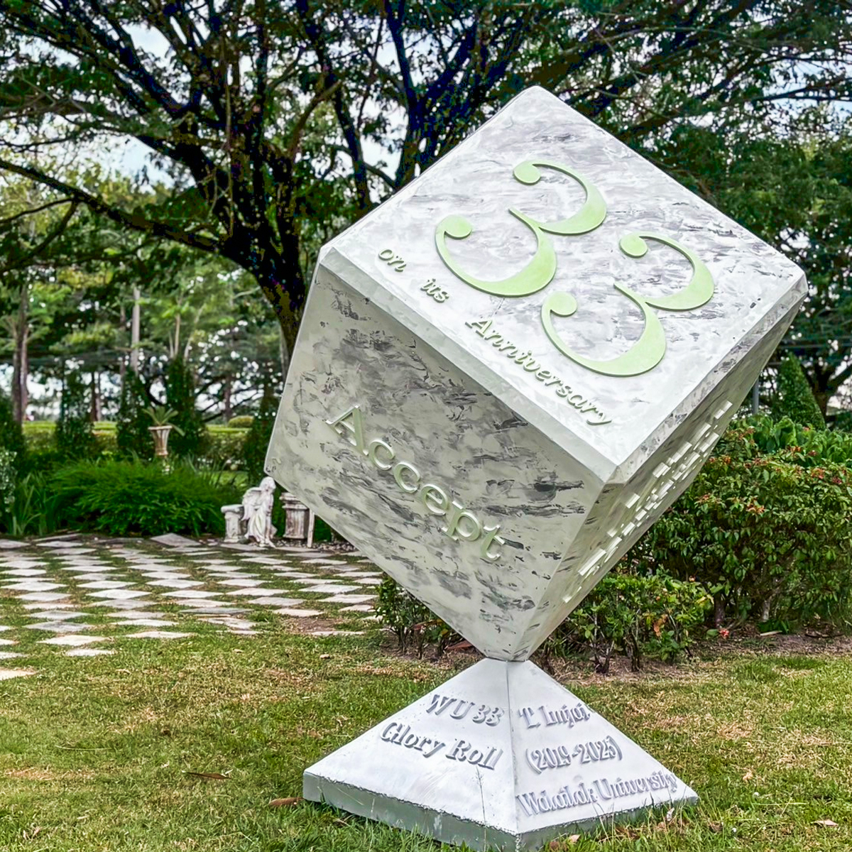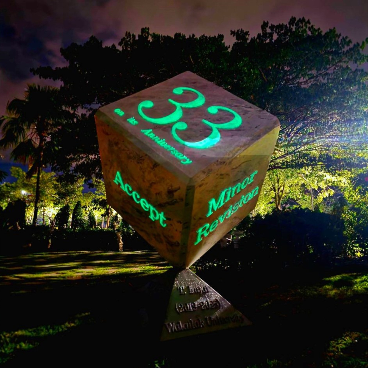 At Walailak University Park (WU Park), a striking glowing cube installation titled “WU 33 – Glory Roll” has been unveiled as a new symbol of innovation and collaboration. Designed and developed by Assoc. Prof. Dr. Thanongsak Imjai and his research team, the cube measures 1.3 x 1.3 meters and radiates a vibrant glow that represents the success of Walailak University’s research excellence and international partnerships.
