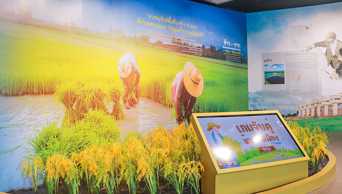 This room displays research on local resources in the Pak Phanang River Basin, including indigenous rice varieties, the Ruby of Siam grapefruit, native vegetables, traditional foods, and products derived from indigenous wisdom. It demonstrates how academic services and royal initiative projects can promote local development and help resolve community resource conflicts through multi-sector collaboration.