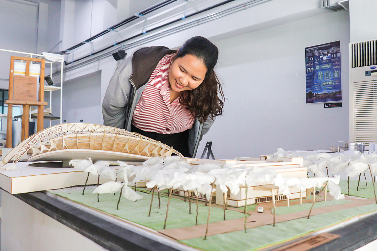 The gallery at the Architecture & Design Building displays stunning views of Walailak University across the campus. Additionally, it displays the drawings that were drawn by Walailak University students and others.