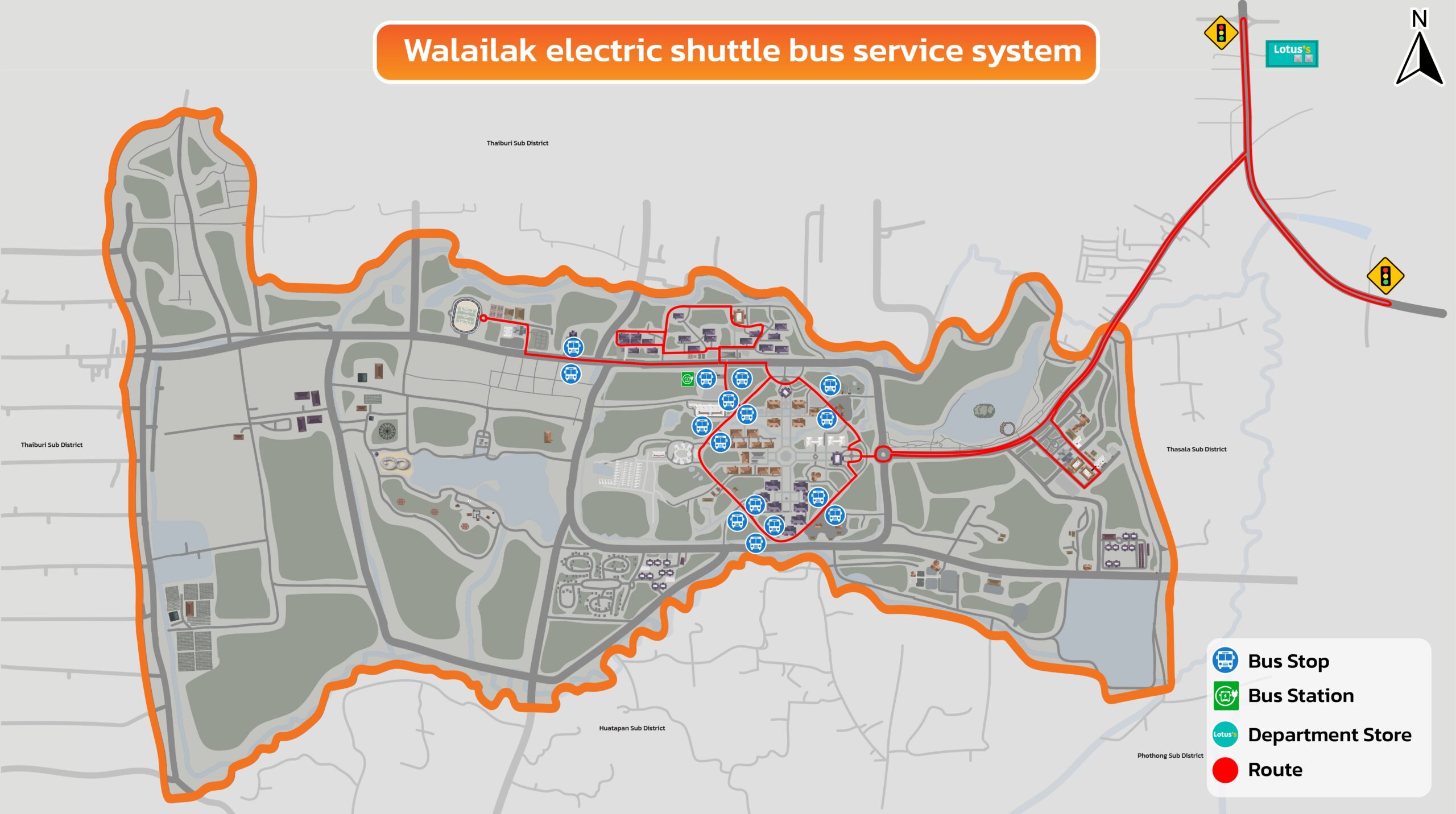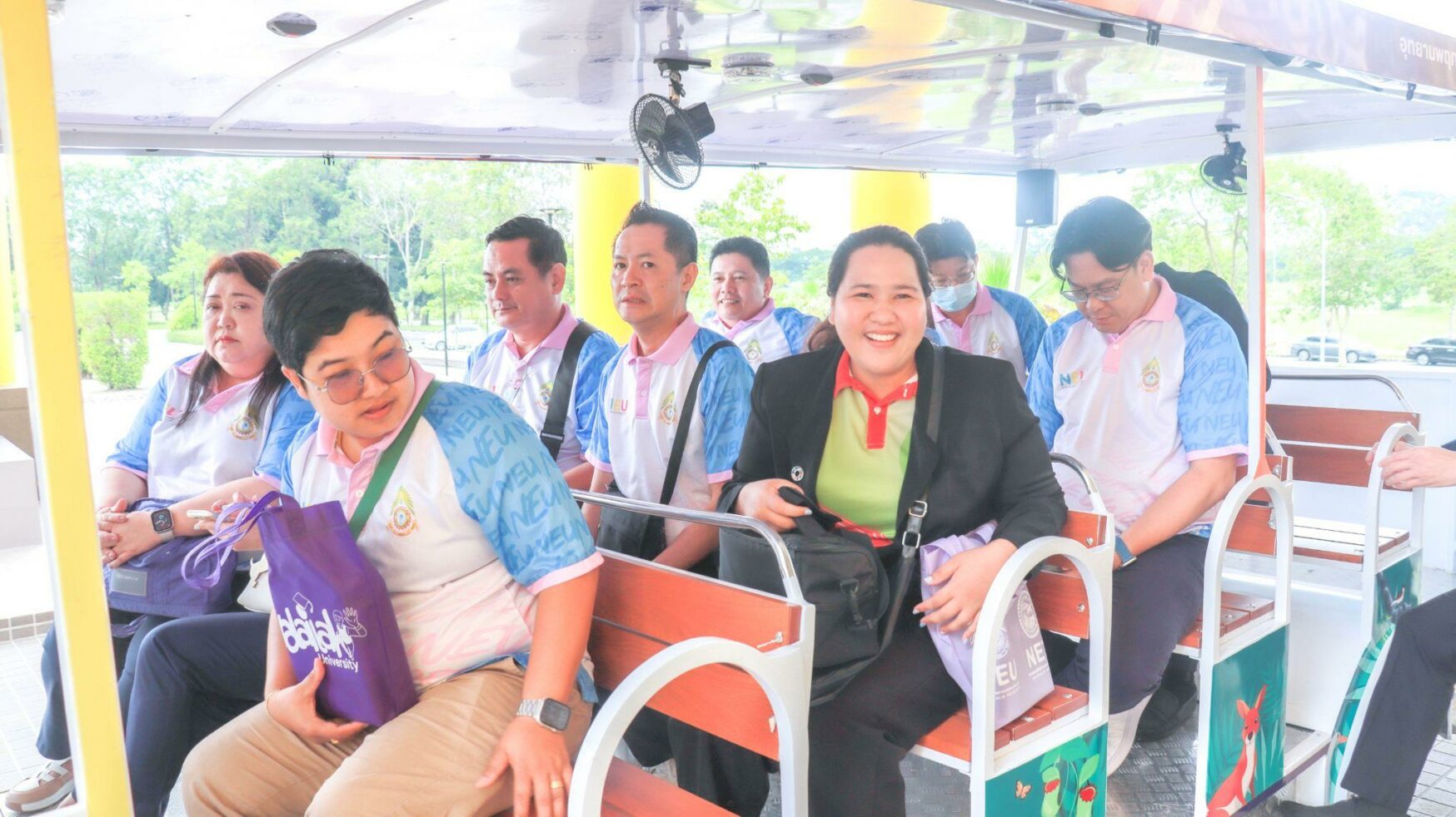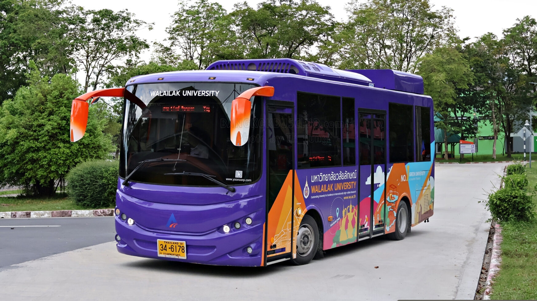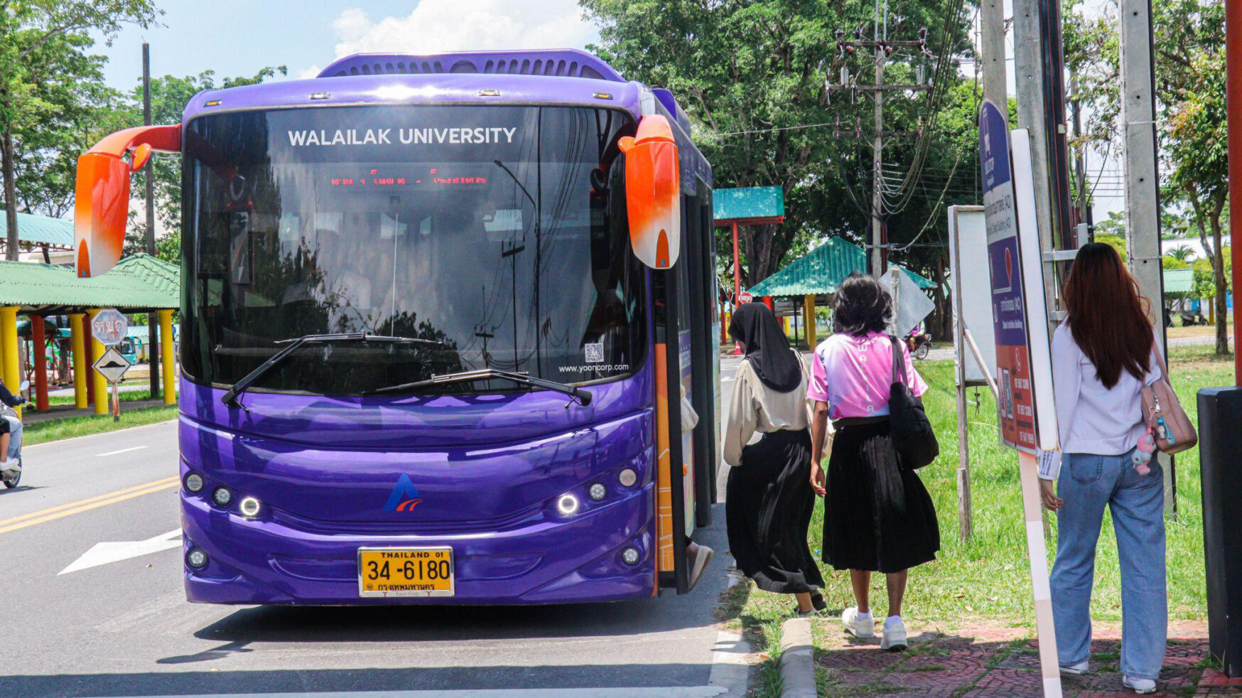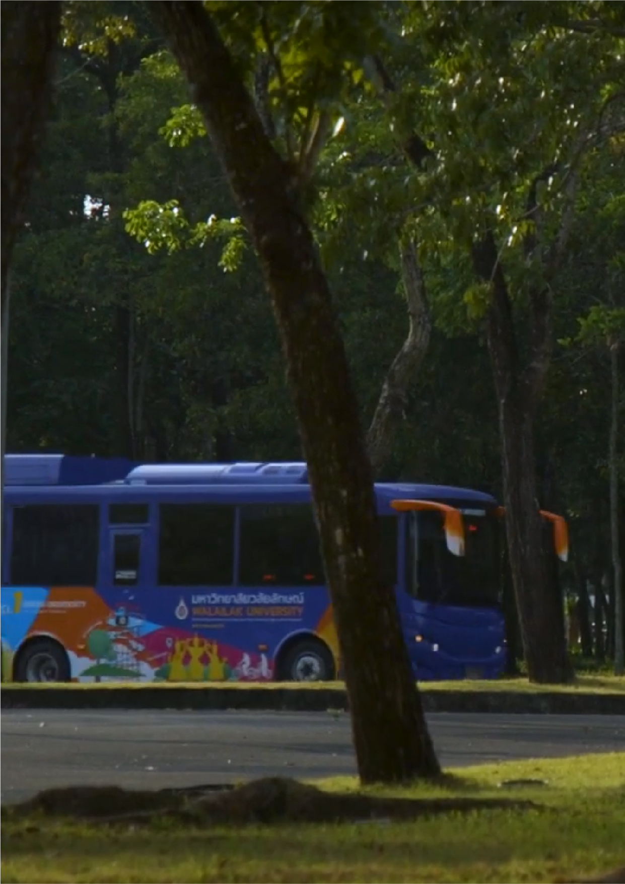 In 2024, Walailak University operated nine electric shuttle buses to facilitate transportation for students and staff both on and off campus. Each of them can carry 20 people, operating from 7:00 AM to 9:00 PM.