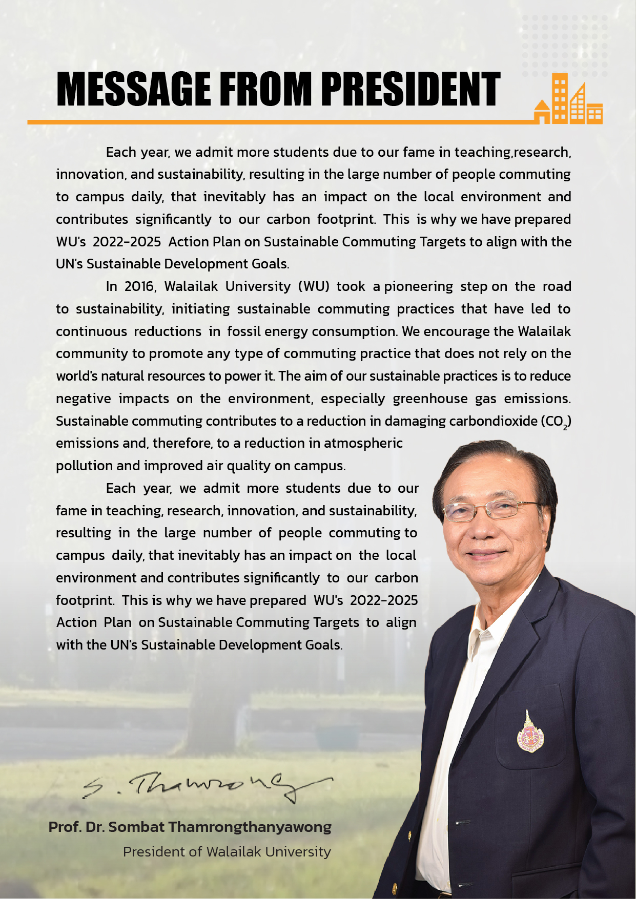 Walailak University’s Measures and Targets for Sustainable Commuting
