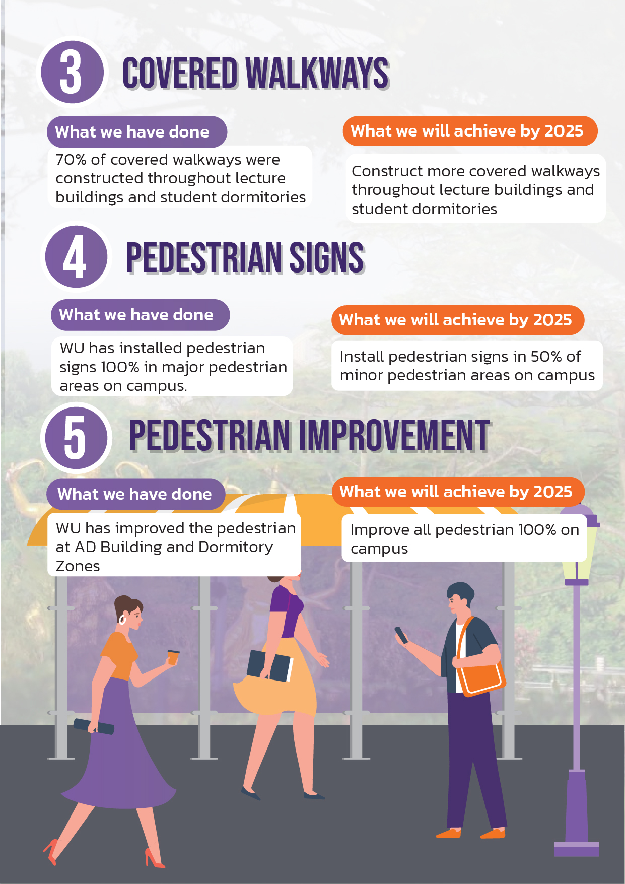In particular, the university’s sustainable commuting strategy emphasizes walking, cycling, carpooling, and vanpooling. A key component of this strategy is the restriction of vehicle access in designated campus areas. This policy has significantly increased pedestrian movement, reduced fuel consumption, lowered greenhouse gas emissions, and eased traffic congestion—contributing to a more sustainable, safe, and pleasant campus environment.