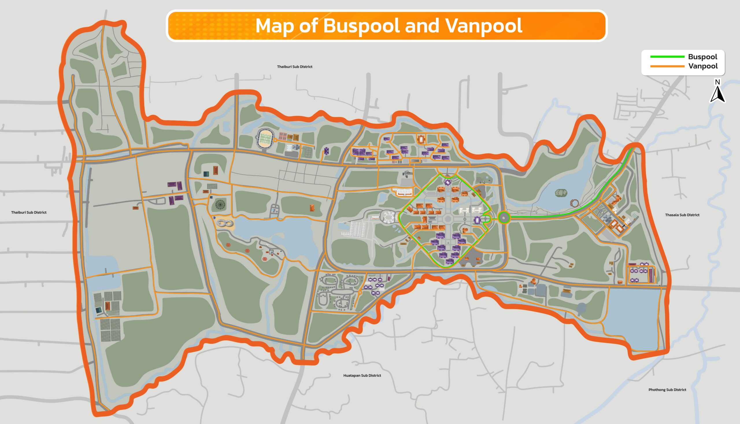 Walailak University provides buspool and vanpool services for staff commuting from their homes to the university. This initiative reduces the number of private vehicles on campus, easing traffic congestion and lowering carbon emissions. By promoting shared transportation, the university not only supports environmental sustainability but also fosters a sense of community among staff members.