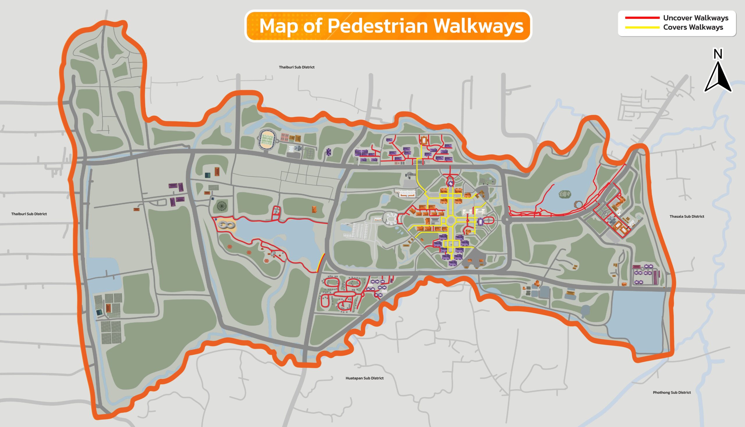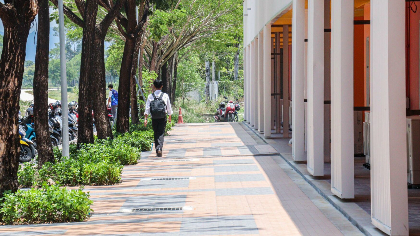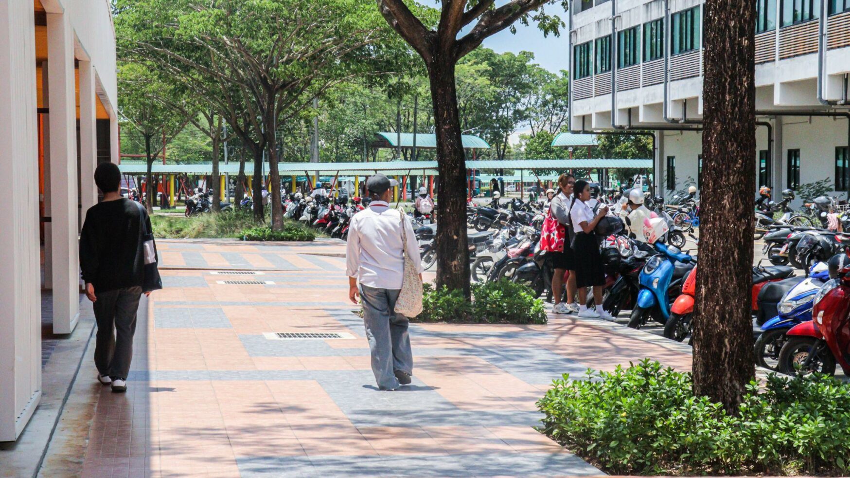 Walailak University provides both covered and uncovered pedestrian walkways to support sustainable mobility across campus. These walkways encourage walking as a primary mode of transportation for the university community, promoting environmental responsibility and healthier lifestyles.