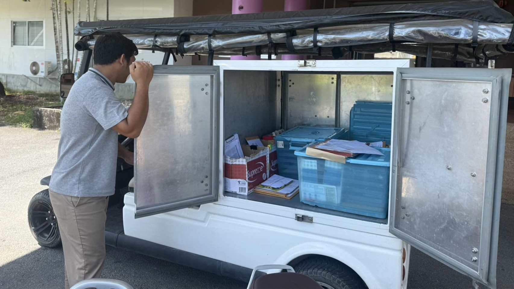 Several organizations at Walailak University have integrated electric vehicles (EVs) into their daily operations to promote environmentally friendly practices and reduce carbon emissions on campus. These EVs are used for a variety of purposes, such as delivering official documents between offices, transporting agricultural products to campus vendors, inspecting and managing agricultural fields, and traveling to offices for the repair and maintenance of electrical equipment. By adopting EVs, the university not only increases operational efficiency but also strengthens its commitment to sustainable transportation and its role as a model for green campus development.