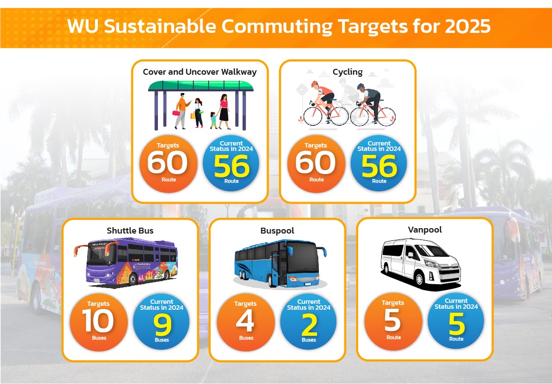 Walailak University sets its sustainable commuting targets in various ways, including: