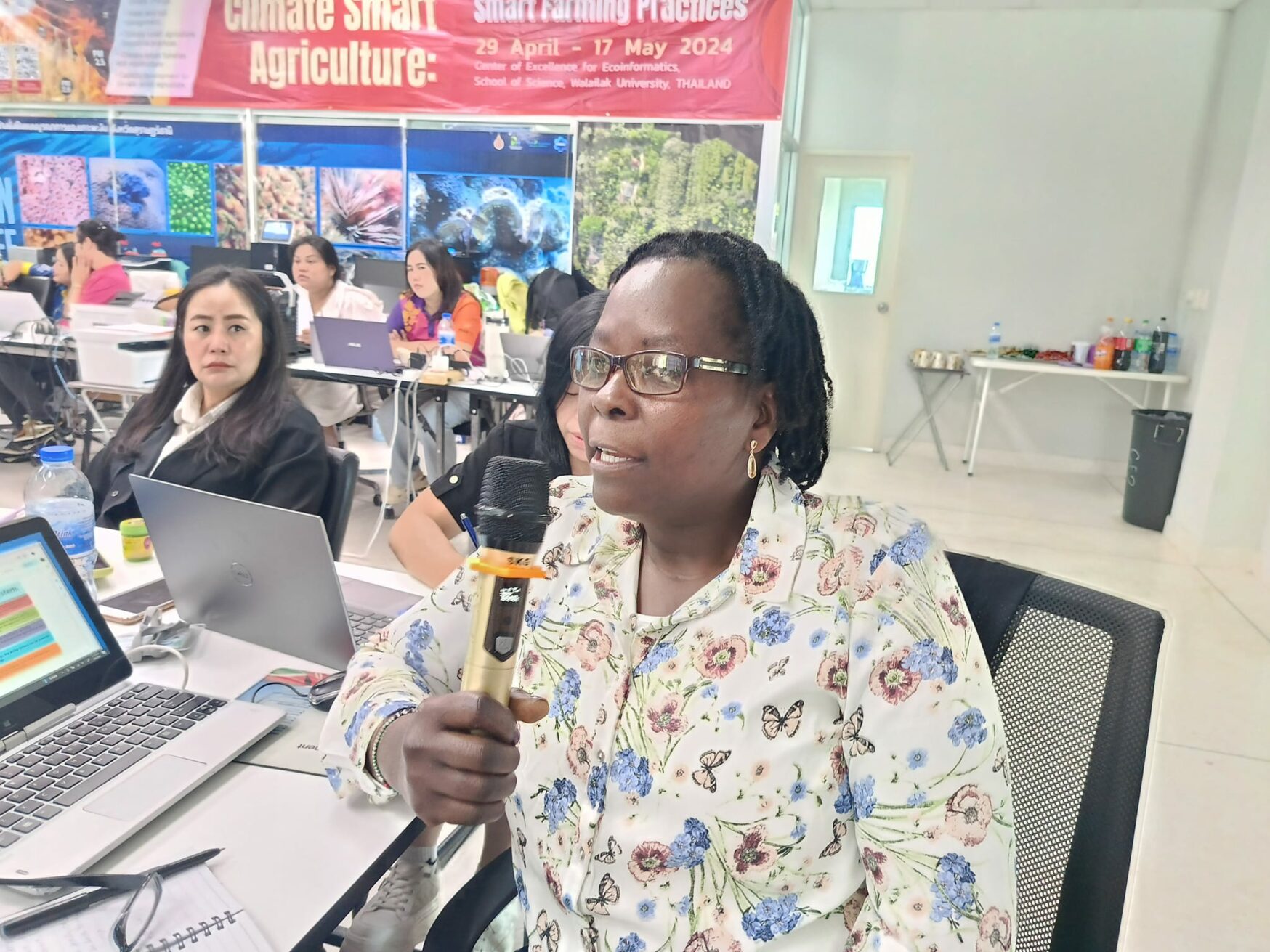 Walailak University, represented by Assoc. Prof. Dr. Mullica Jaroensutasinee and Assoc. Prof. Dr. Krisanadej Jaroensutasinee, provided an in-depth analysis of agricultural challenges and solutions in Thailand based on data collected and measured by international partners before and during the program. Their presentation covered essential topics, including sustainable agricultural practices implemented in rural and agricultural regions, particularly in northeastern Thailand, the success of best practices developed under the Philosophy of Sufficiency Economy, and the legal framework governing agricultural practices. They also discussed the limitations and challenges faced by Thailand in implementing climate-smart agriculture, highlighting lessons learned and strategies that could be applied in other countries facing similar issues.