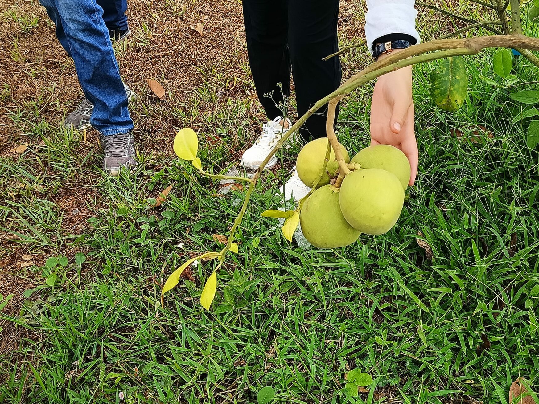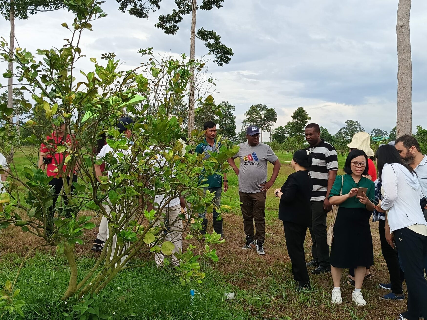 Figures: The international partners visiting the Siam Ruby Pomelo farming site at Walailak University