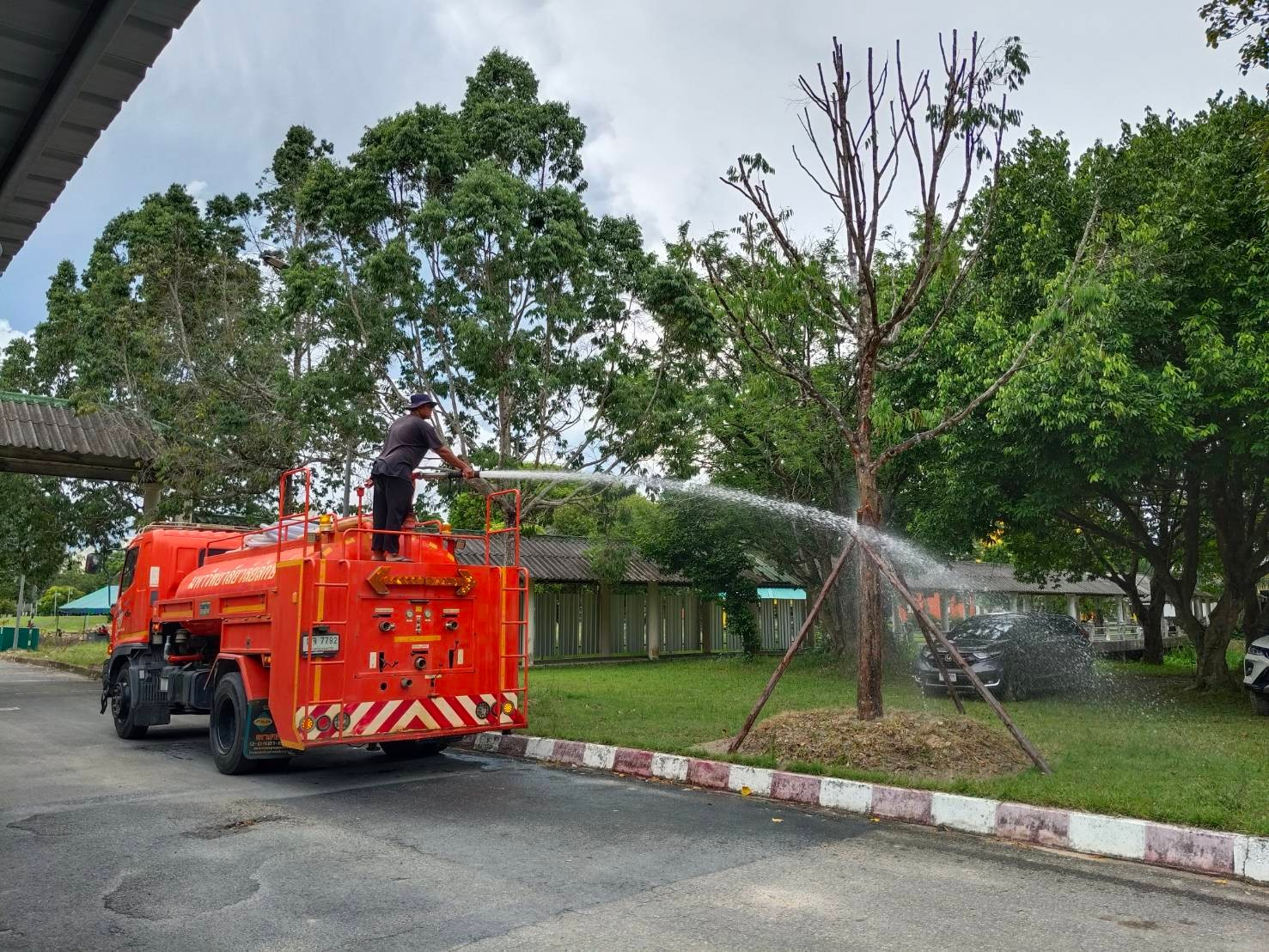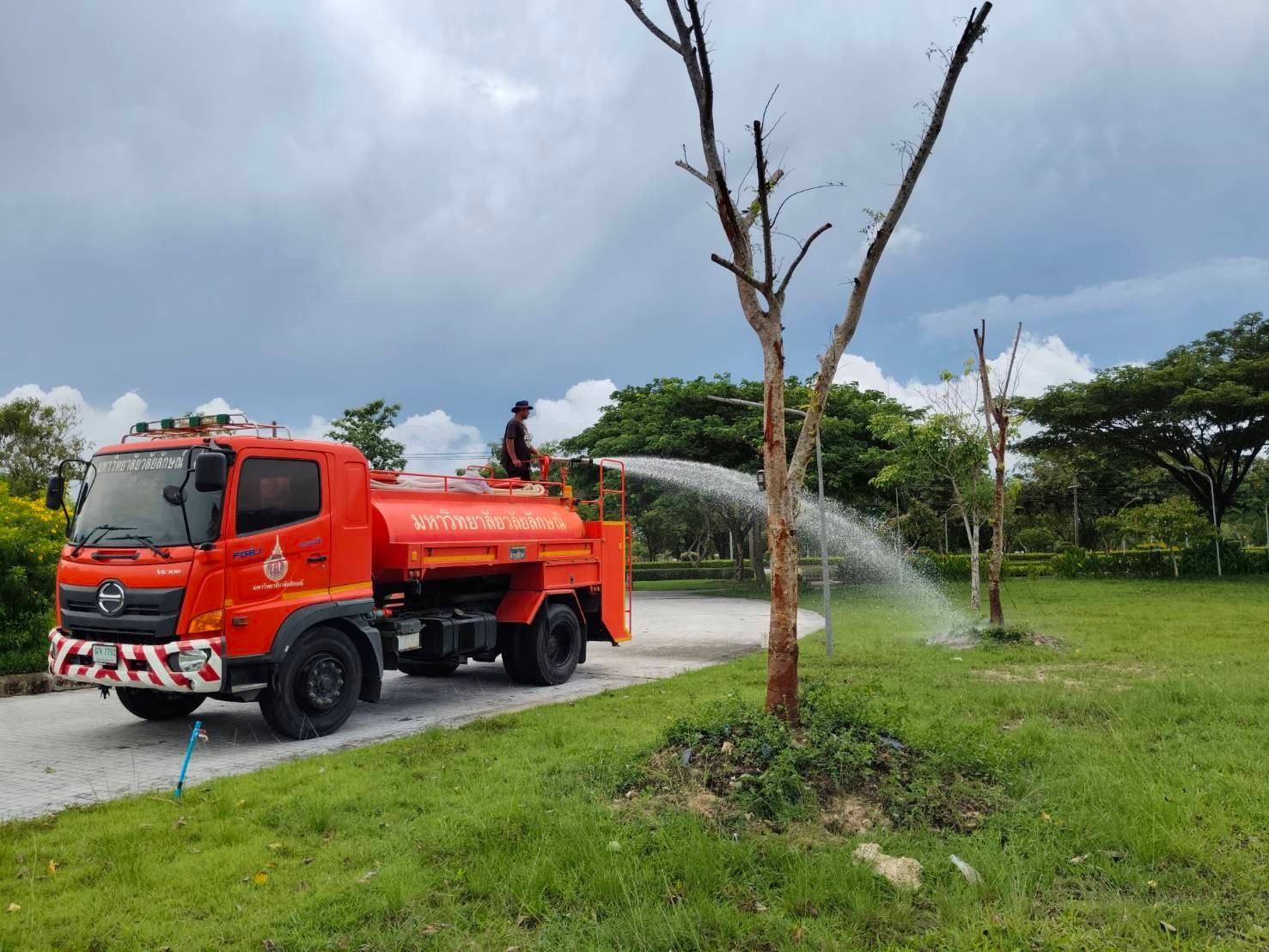 At present, Walailak University has established a total of eight pumping stations on campus: Walailak Park Pumping Station, Wang Mak Pumping Station, Kla-Dee Pumping Station, Walai Niwas Pumping Station, Laksanivet Pumping Station 1, Wastewater Treatment Pond Pumping Station, Friday Market Pumping Station, and Walailak University Hospital Pumping Station. These stations play an important role in “water quality control” by regulating water volumes across the university. The university has installed both electric and engine-driven pumps with capacities of 1–2 cubic meters per second at these pumping stations, totaling 21 units, to cover flood-prone areas. This system helps prevent flooding and water pollution that may occur during flood events in areas surrounding the university.