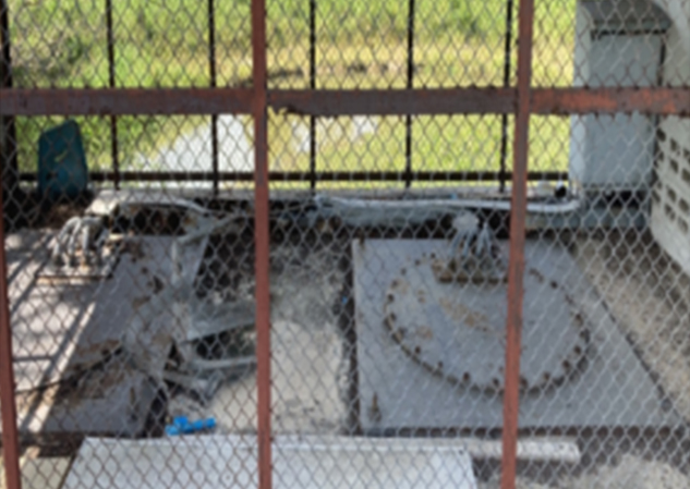 All wastewater is filtered again at the wastewater pumping station located at the treatment plant under the Wastewater Management System Development Project. A motor-driven mechanical screen is installed to prevent solid waste from clogging the submersible pumps. The screen is a fine-type model equipped with automatic brushes that remove debris mixed with the wastewater. This process plays a crucial role in ensuring the smooth transfer of wastewater into the treatment system. After solid waste and grease have been separated, the wastewater is then pumped into the aerated lagoon for further treatment.