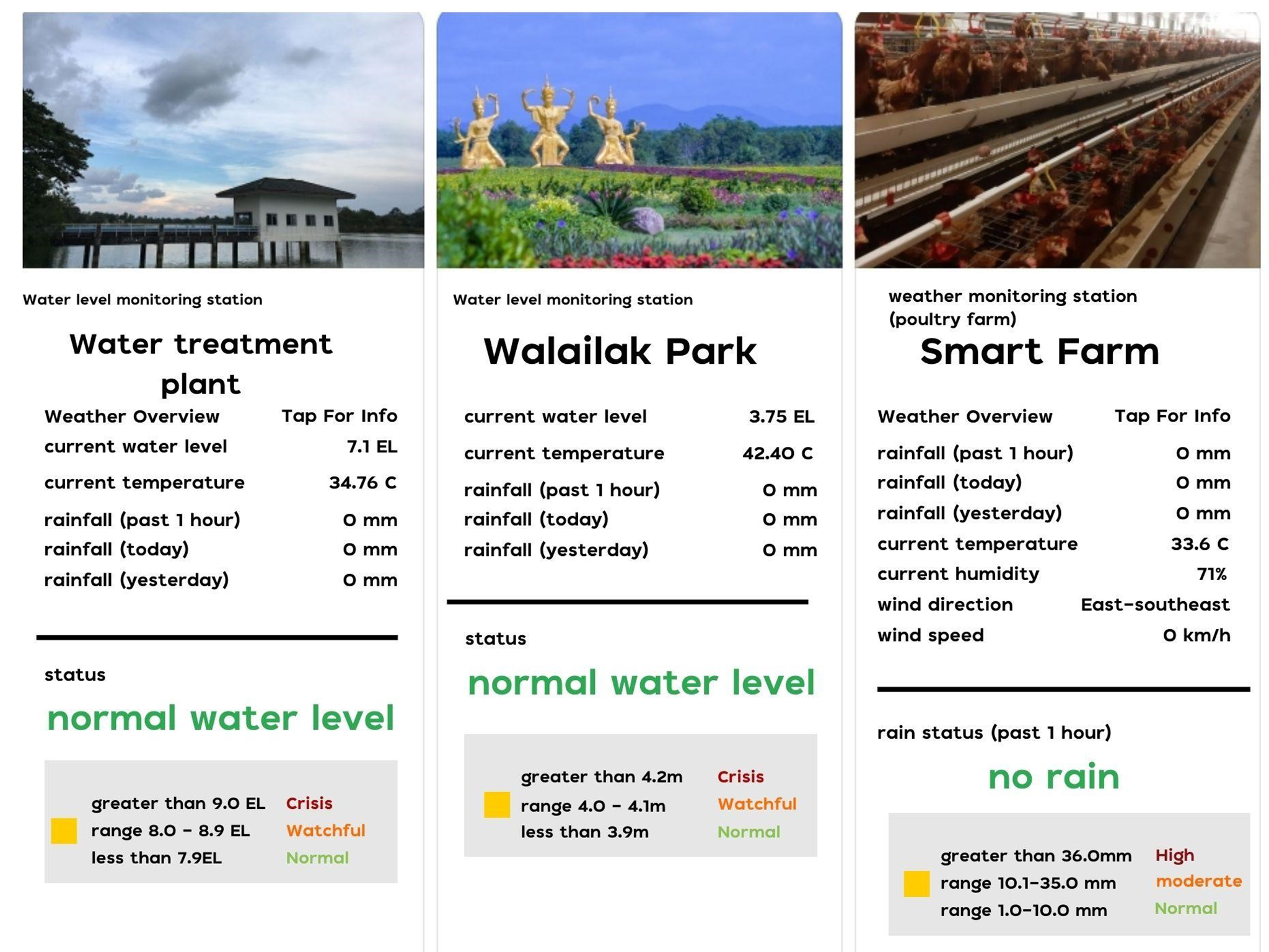 One of the key strengths of the university’s water management system is the integration of digital technology to monitor and control water levels through the BOT CDT application. This system enables real-time monitoring of rainfall data, reservoir water levels, temperature, and weather conditions. Having accurate and up-to-date information enhances the university’s capacity for flexible and responsive water management, particularly during the rainy season or water-related disasters such as floods and droughts. The application serves as an essential tool for monitoring, preventing, and managing water pollution sustainably. It is specifically designed to protect water systems from contamination and features various functions, including data analysis from IoT sensors installed in different water sources, water level alert systems for critical situations, and comprehensive reports on current weather conditions, temperature, and rainfall levels in risk or surveillance areas. These features allow users to access systematic, real-time water information, thereby improving forecasting capabilities and effectively reducing the impacts of flash floods.