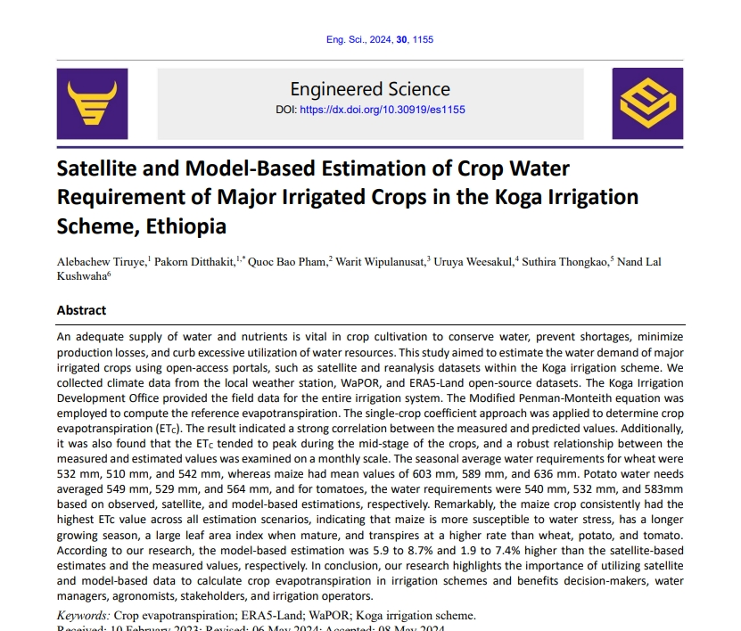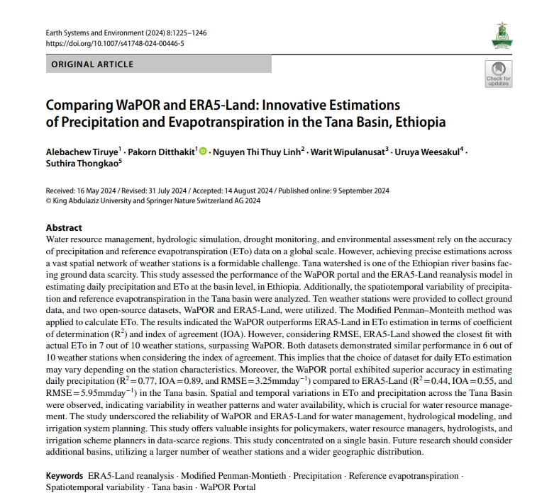 In addition, in 2024, the university continued to publish academic articles and journals authored by its faculty members as primary and co-authors. These publications focused on promoting knowledge in water resource conservation, sustainable water management, and community participation in local water governance processes. The articles encompassed field research, case study analyses from both domestic and international communities, as well as policy recommendations that could be practically applied at local and national levels.