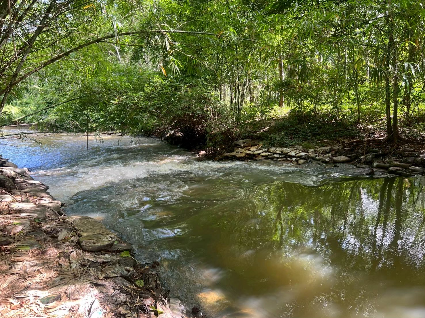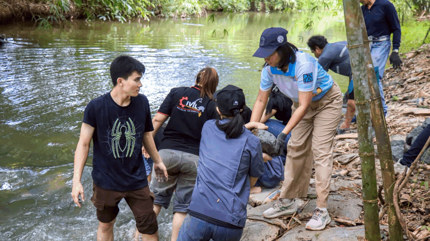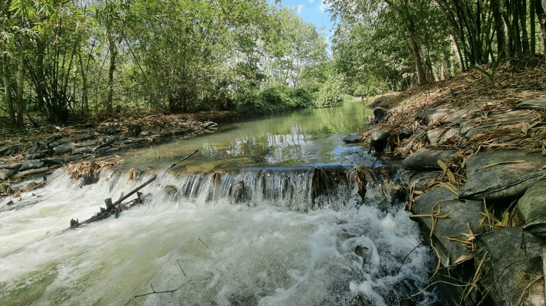 The restoration activities focused on developing eco-friendly solutions that align with the principles of sustainability. Mr. Thongkao provided practical knowledge and technical guidance on constructing and renovating the weir using natural or “green” materials that do not harm the freshwater ecosystem.