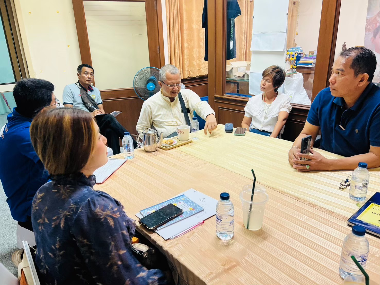 Figures : Mr. Suthira Thongkao and the WU team discussing with the representatives of local people and local government authorities to plan and set strategies on the project for restoring and improving the weir