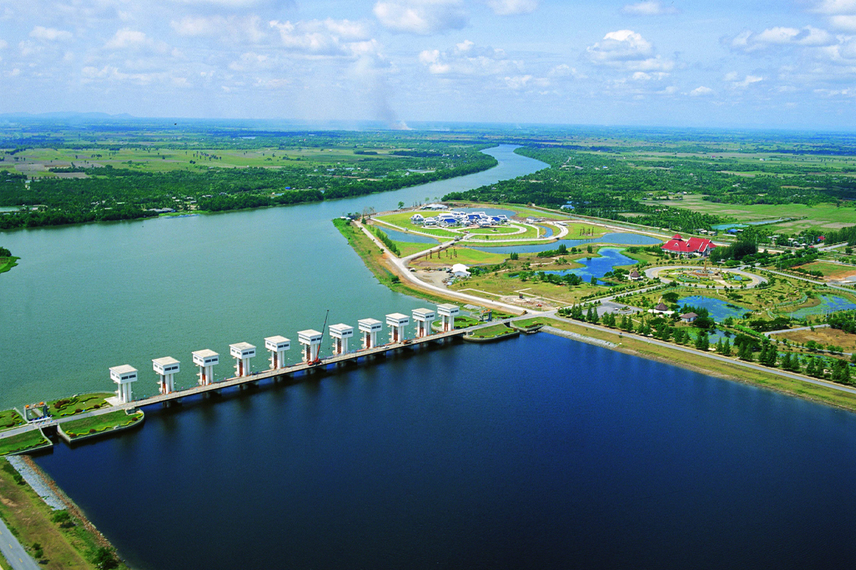 The Pak Phanang Basin Development Project focuses on addressing flooding, saltwater intrusion, and water scarcity within the extensive watershed of the Pak Phanang River. A key component of the project was the construction of the Uthokvibhajaprasid Barrage, designed to block seawater, prevent saltwater intrusion, and store freshwater for use during the dry season. Additionally, canals were dredged to enhance water flow, and emergency water gates were installed to support effective water management throughout the area.
