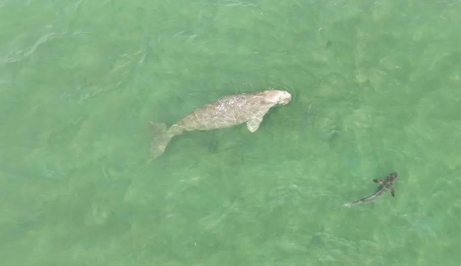 Preliminary findings revealed a rich diversity of marine megafauna, including 36 dugongs (with one mother-calf pair), 6 humpback dolphins (including two mother-calf pairs), and 38 sea turtles. Visual health assessments showed that dugongs exhibited normal feeding and movement behaviors within the seagrass beds, indicating a healthy and stable population. The presence of mother-calf pairs further signifies successful breeding and favorable ecological conditions. Likewise, the humpback dolphins appeared robust and free from injuries or entanglement by fishing gear, while sea turtles showed no signs of stress or abnormal activity.