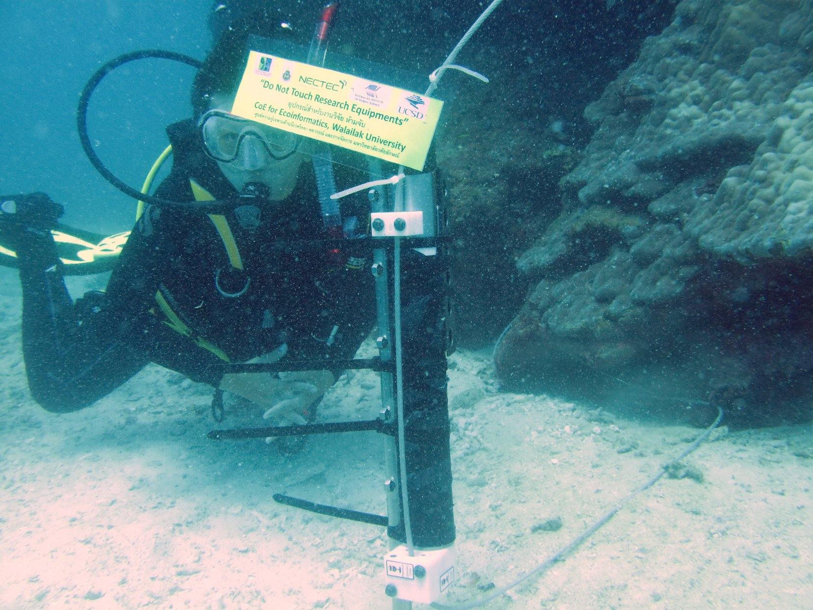 These sensors, strategically installed in Khon Khae Bay and Patok Bay, continuously record variations in seawater temperature, conductivity, and depth. Over the years, the project has expanded its scope to monitor broader environmental parameters, providing valuable insights into the dynamic changes affecting coral reefs and marine biodiversity.