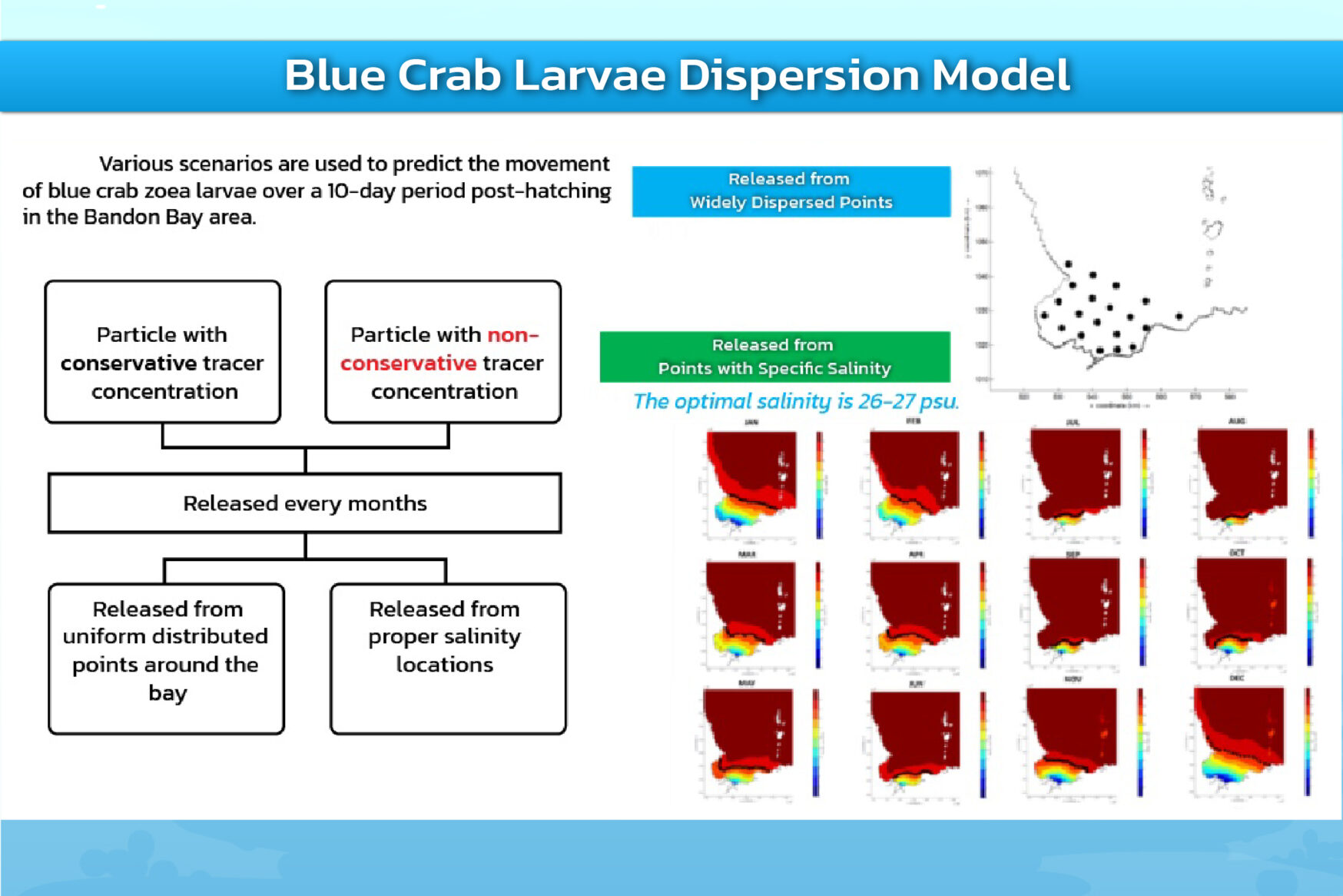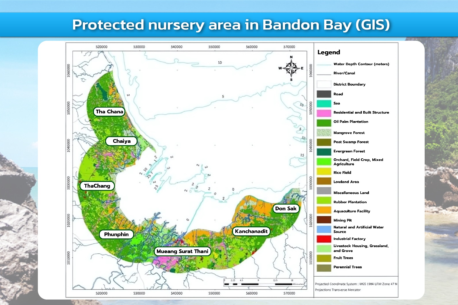 Bandon Bay, a vast watershed area located near Walailak University, has become the focus of comprehensive research supported by the National Research Council of Thailand (NRCT) and the Agricultural Research Development Agency (ARDA). Researchers from Walailak University, together with government agencies, local authorities, and the Thai Frozen Foods Association (TFFA), have collaboratively conducted multidisciplinary studies on the bay’s oceanography and ecology. The research aims to monitor water and sediment quality, evaluate fishing gear practices, analyze oceanographic data, and assess agricultural and industrial land use in the surrounding areas.