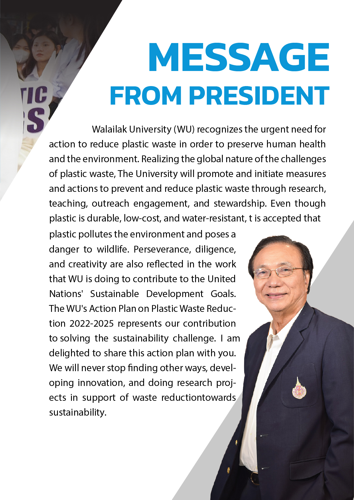By setting measurable goals and tracking progress, the action plan supports long-term environmental impact while fostering a culture of responsibility among students and staff. It empowers the university community to actively engage in conservation initiatives, contributing to the protection of marine ecosystems. Through this initiative, Walailak University demonstrates leadership in sustainability and reinforces its commitment to tackling urgent environmental challenges.