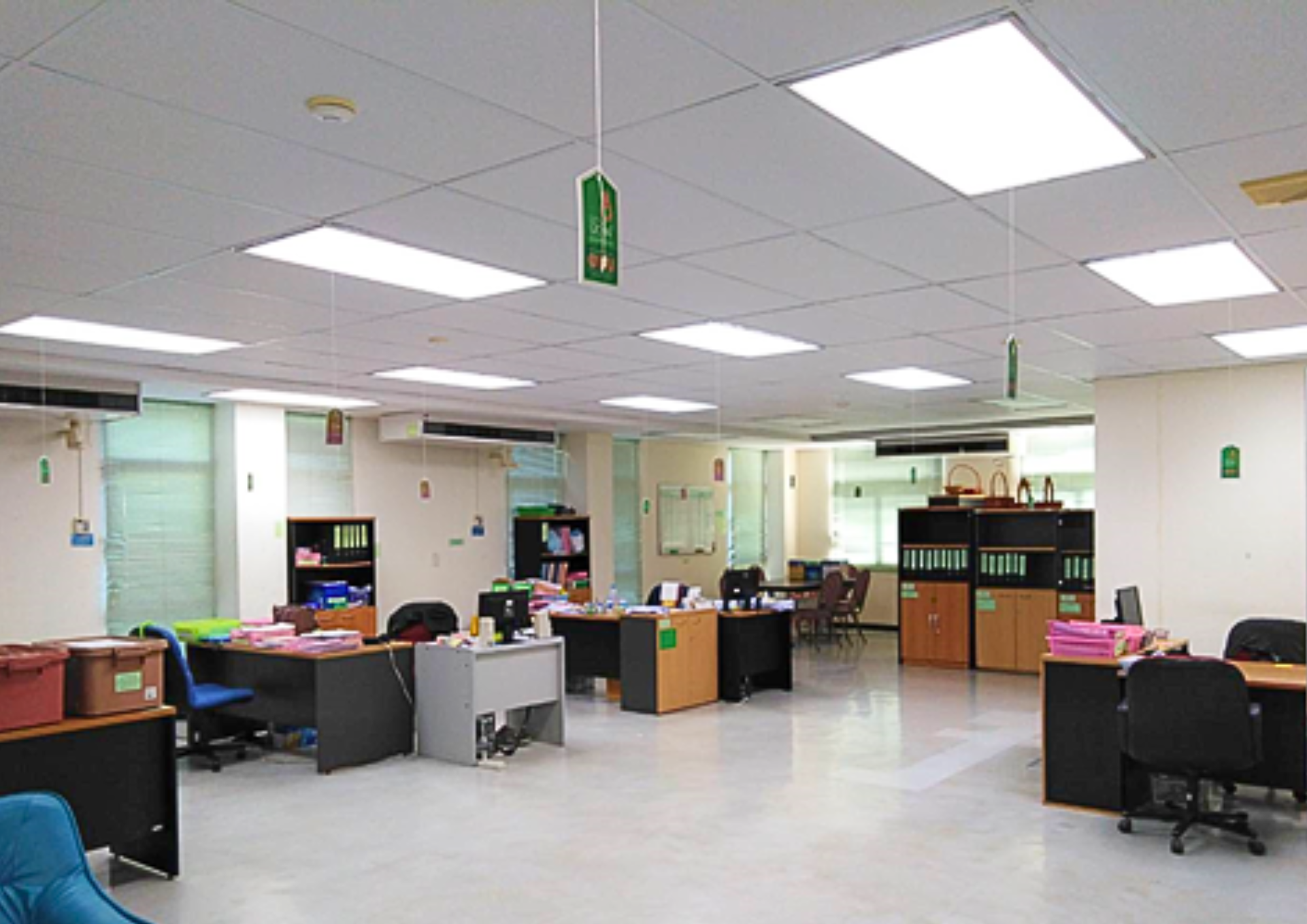 Office buildings were equipped with Inverter Mini-Split Systems, allowing for individual temperature control through a modular system, thereby optimizing both comfort and efficiency. These units were awarded the Energy Efficiency Label No. 5, the highest national standard for energy conservation, certified by the Electricity Generating Authority of Thailand (EGAT) and the Ministry of Energy. Furthermore, the deployment of Variable Refrigerant Volume (VRV) and Variable Refrigerant Flow (VRF) systems enabled precise temperature regulation, enhancing indoor thermal comfort while reducing electricity consumption by up to 40% compared to conventional systems.