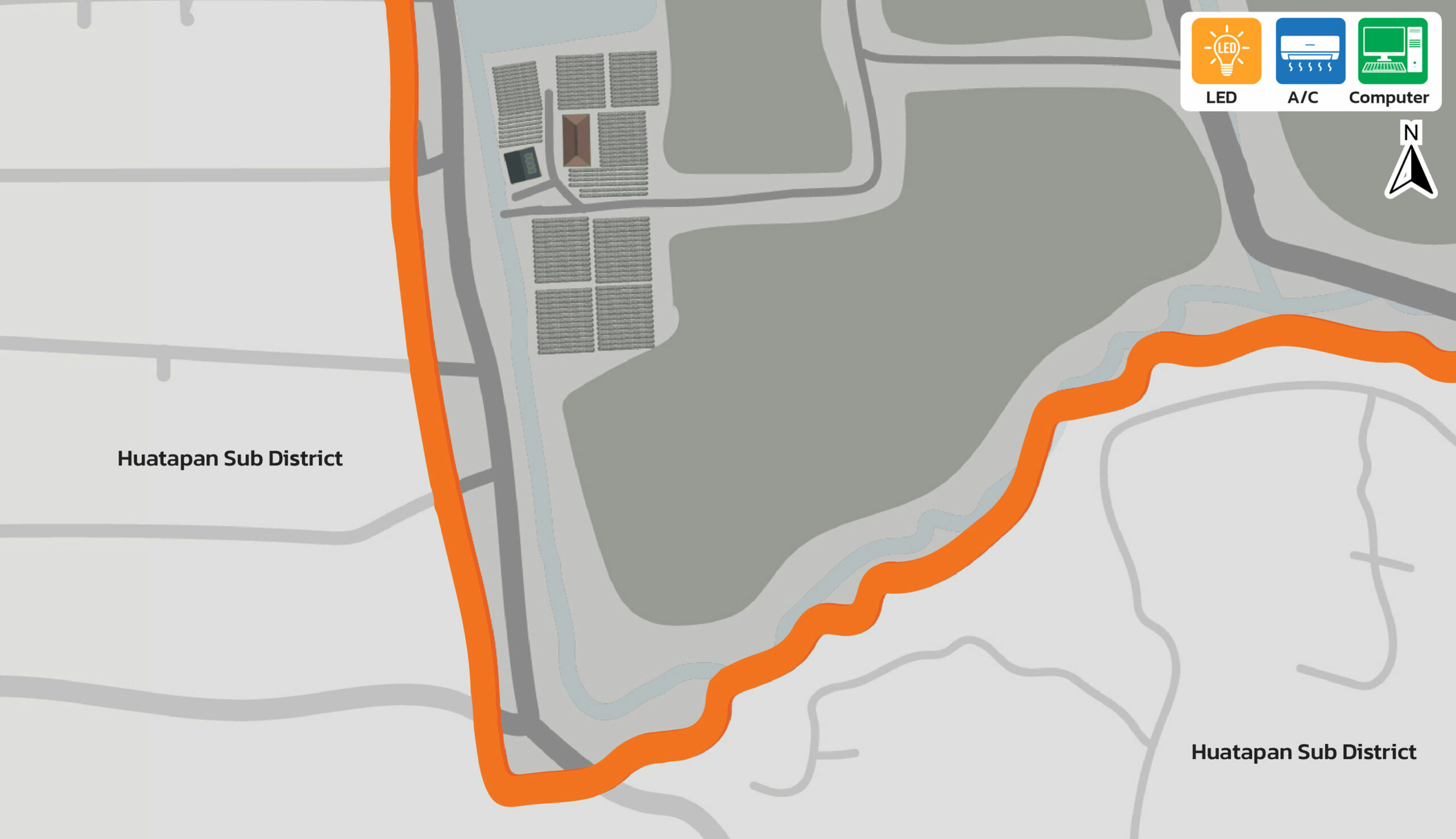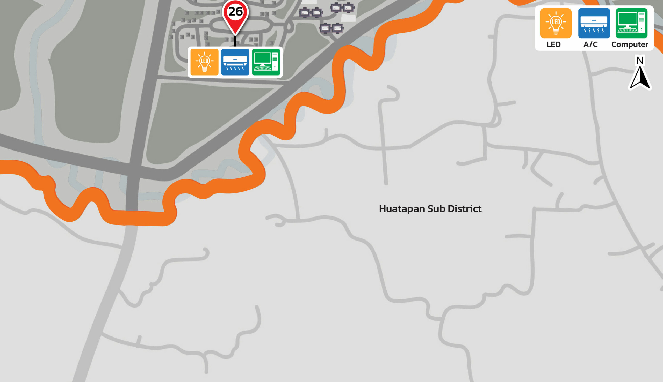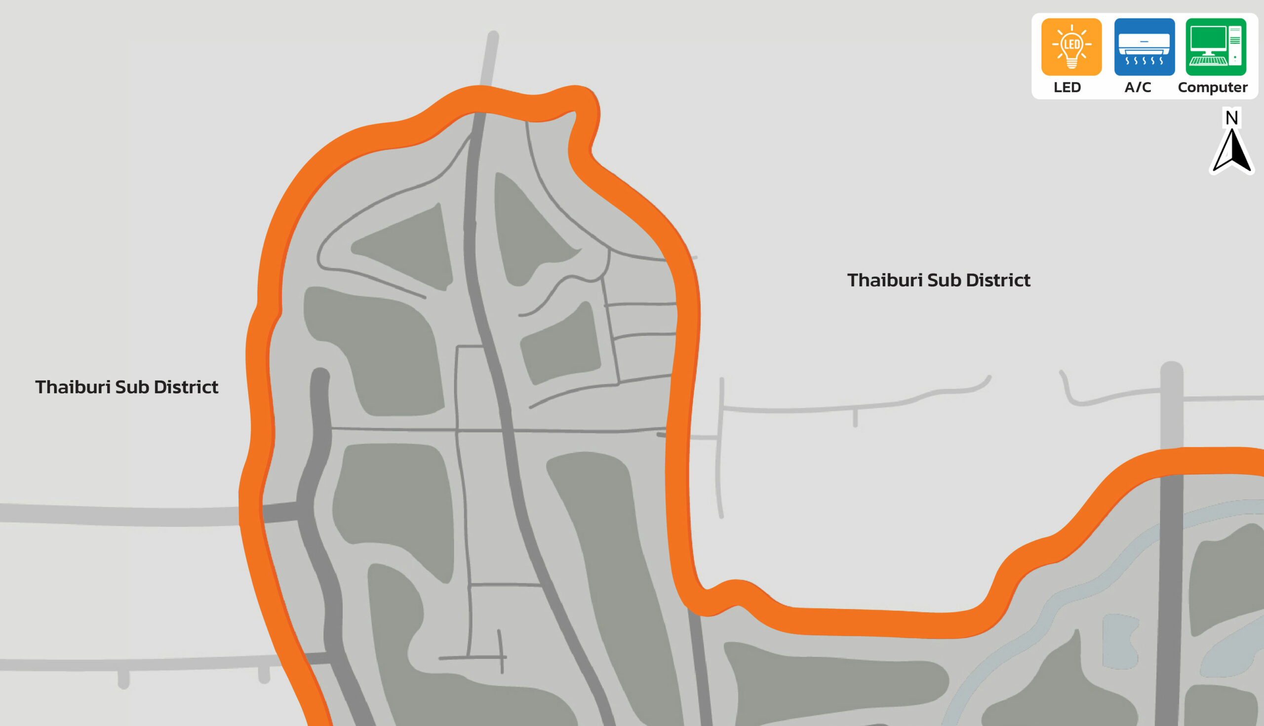 Figures: Distribution Map of Energy-Efficient Equipment 100% implemented across all buildings. (Walailak University, Thailand)