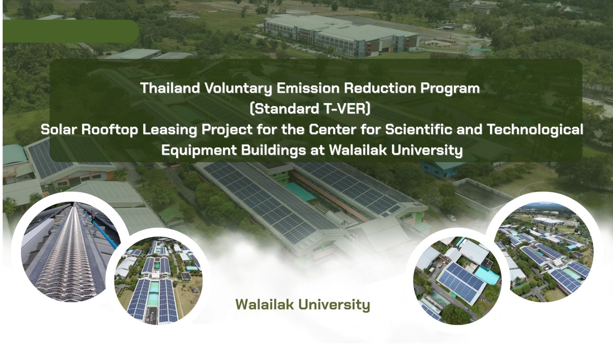 - Walailak University’s 2.54 MW rooftop solar project at the Center for Scientific and Technological Equipment has been validated under the Thailand Voluntary Emission Reduction (TVER) Program, resulting in an average reduction of 1,585 tCO₂e in greenhouse gas emissions per year