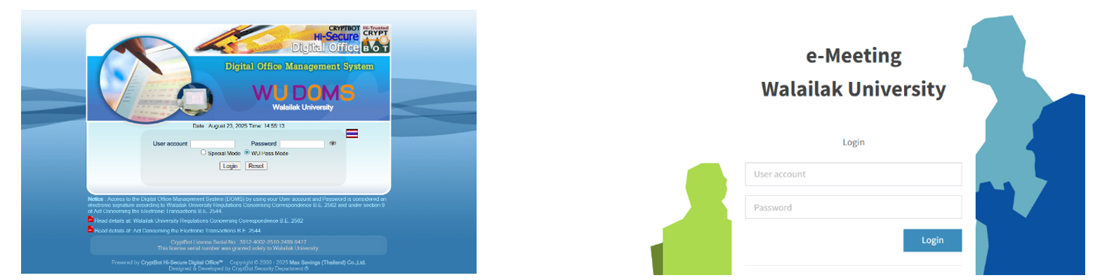 Walailak University places strong emphasis on reducing paper consumption in administrative and academic operations by developing digital platforms that streamline work processes across all departments. Guided by the principle of Smart Office Green University,the university has introduced comprehensive paperless initiatives that not only conserve resources but also enhance efficiency, transparency, and accountability. These initiatives are fully aligned with the universitys Paperless Policy and the UI GreenMetric sustainability framework.