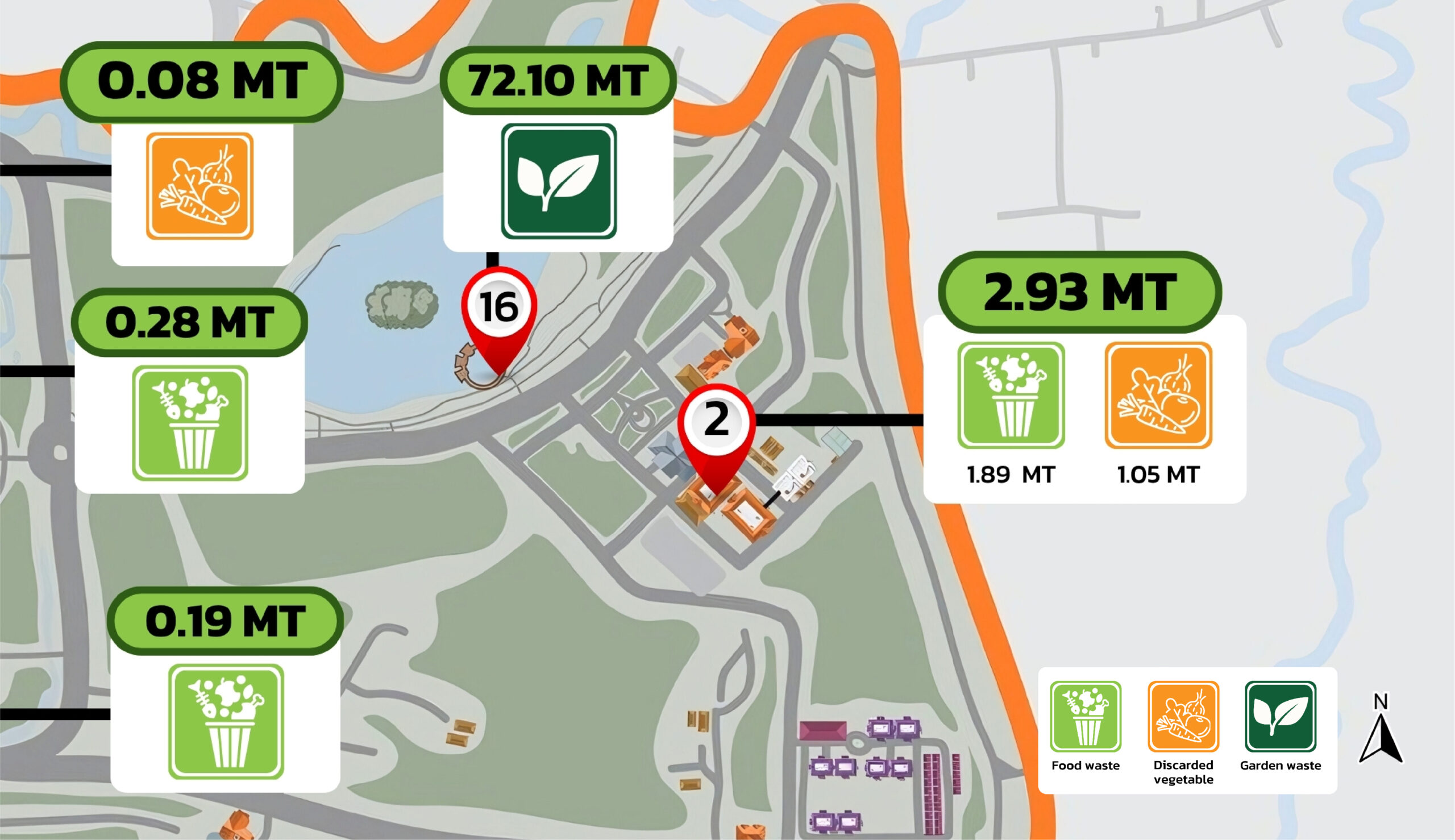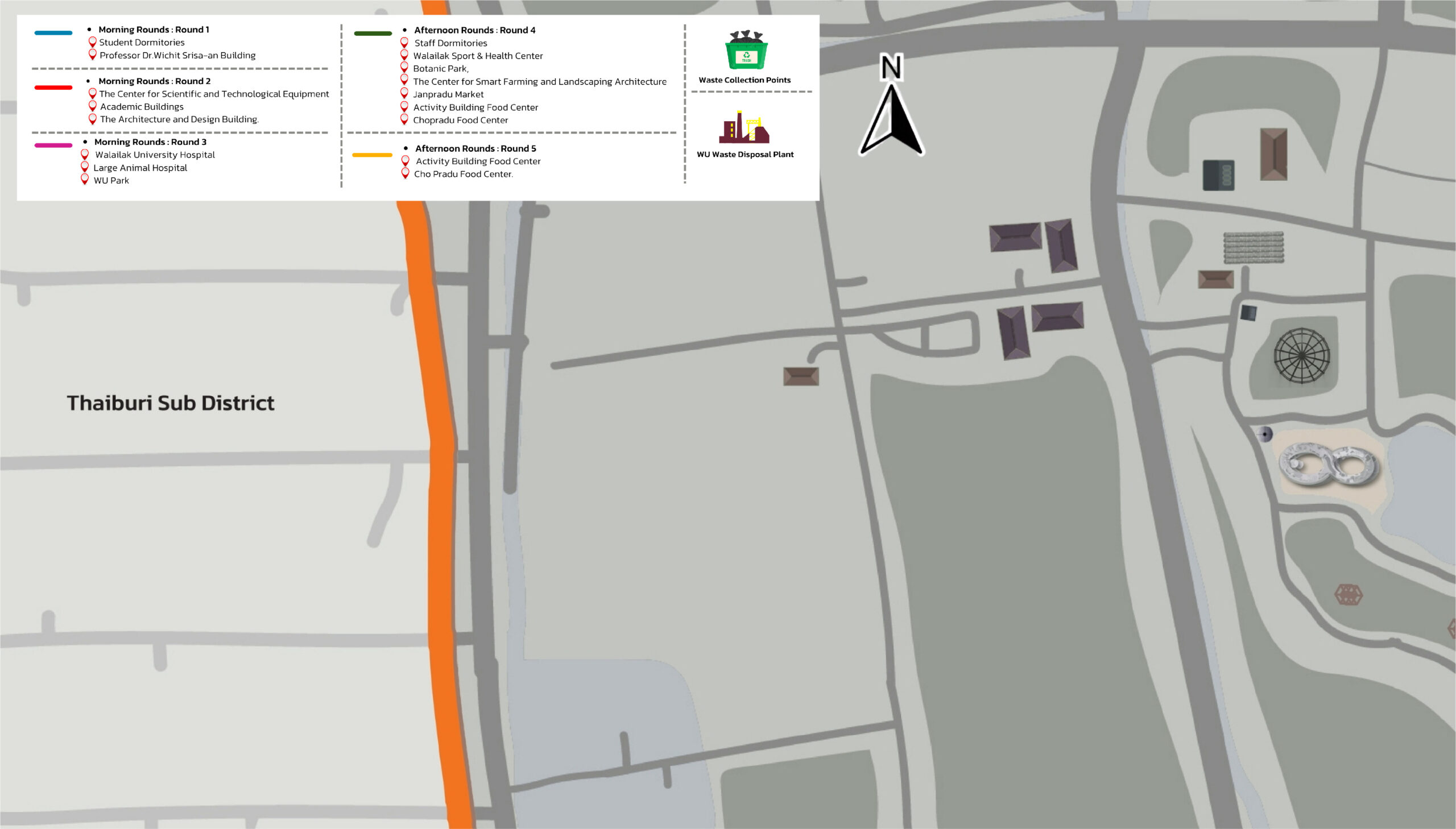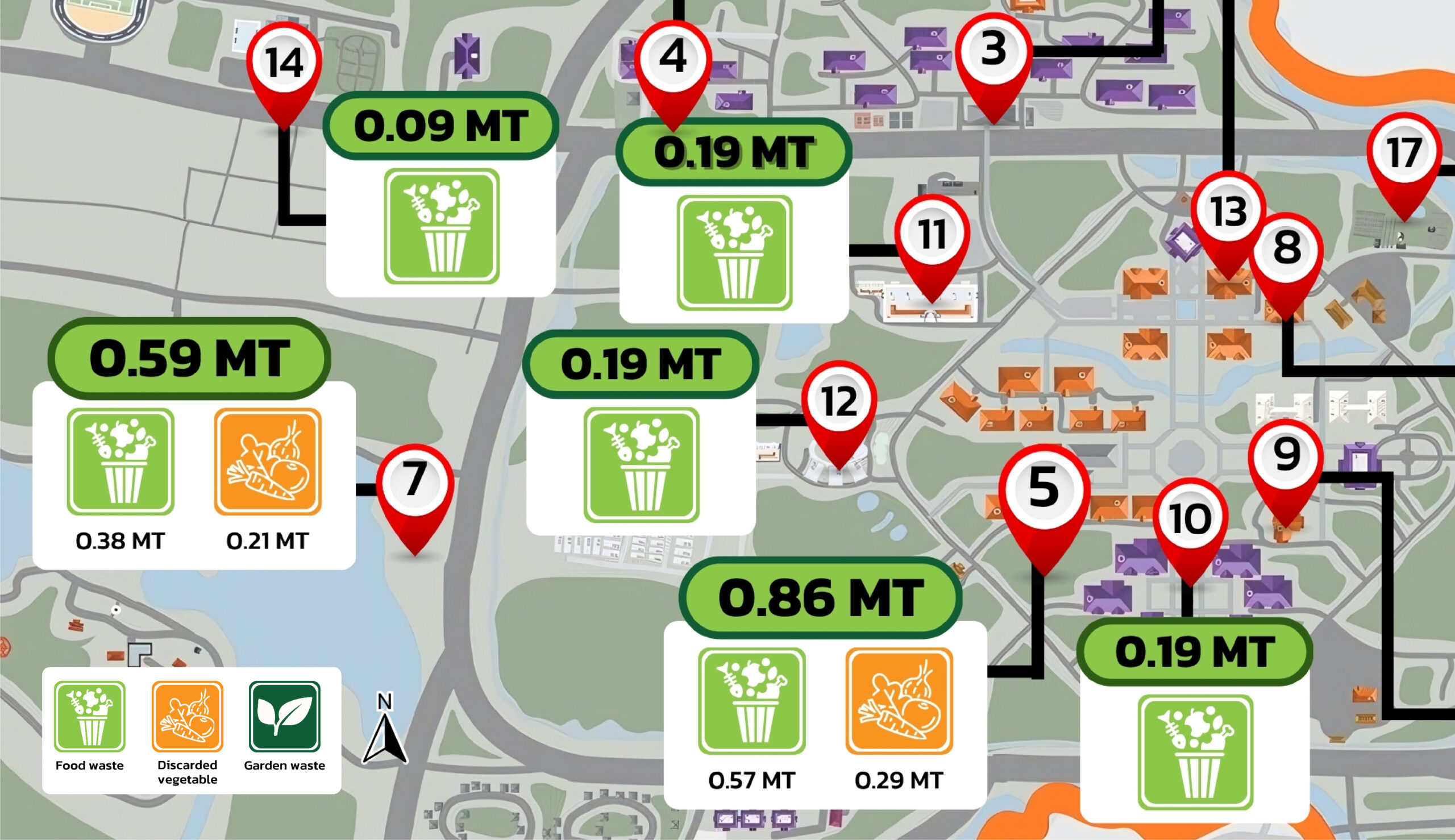 Figure 5 Map Depicting the Sources of Organic Waste within Walailak University