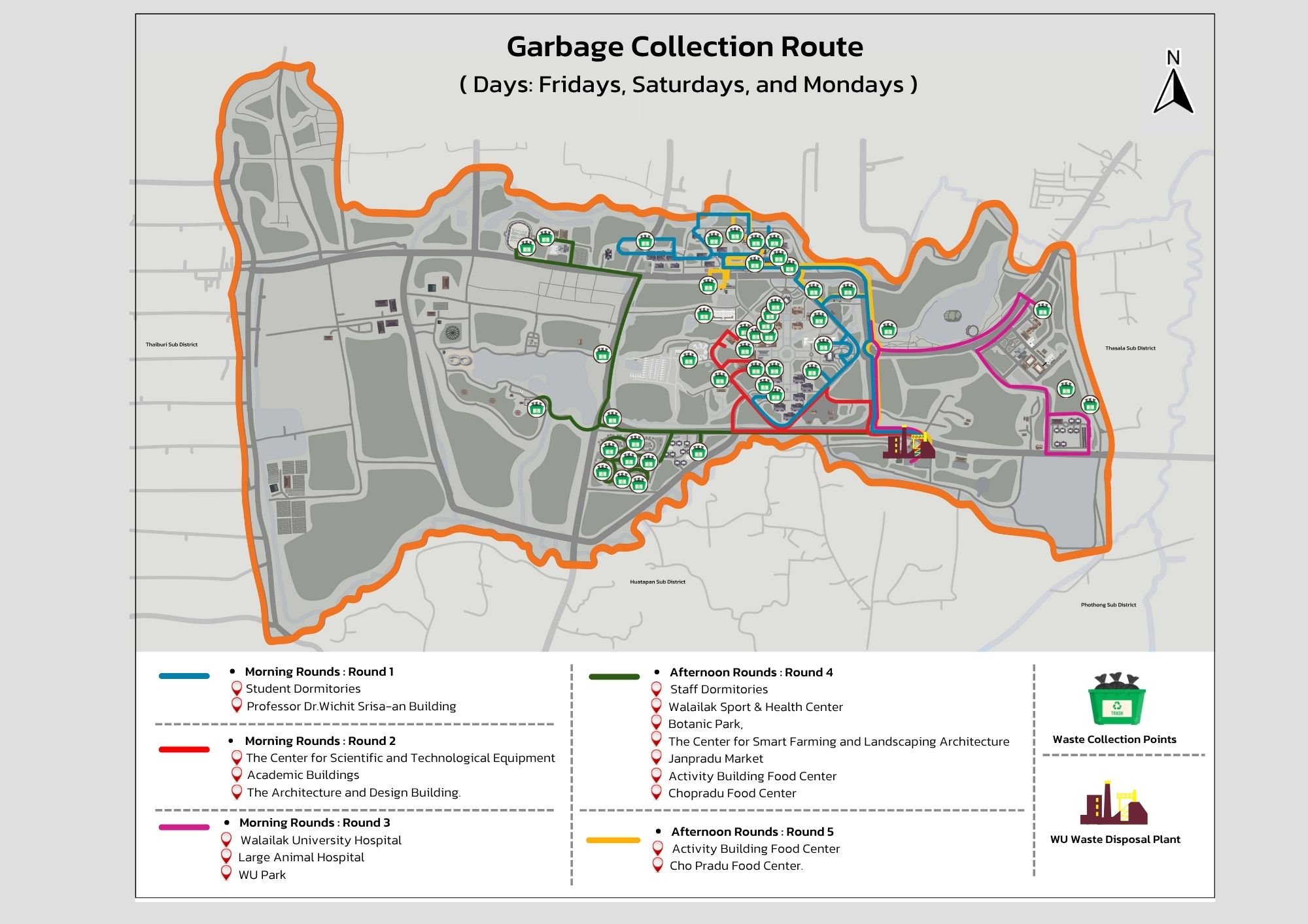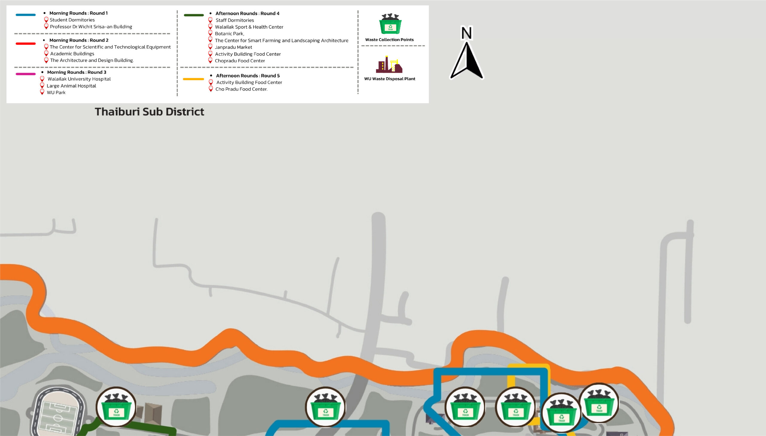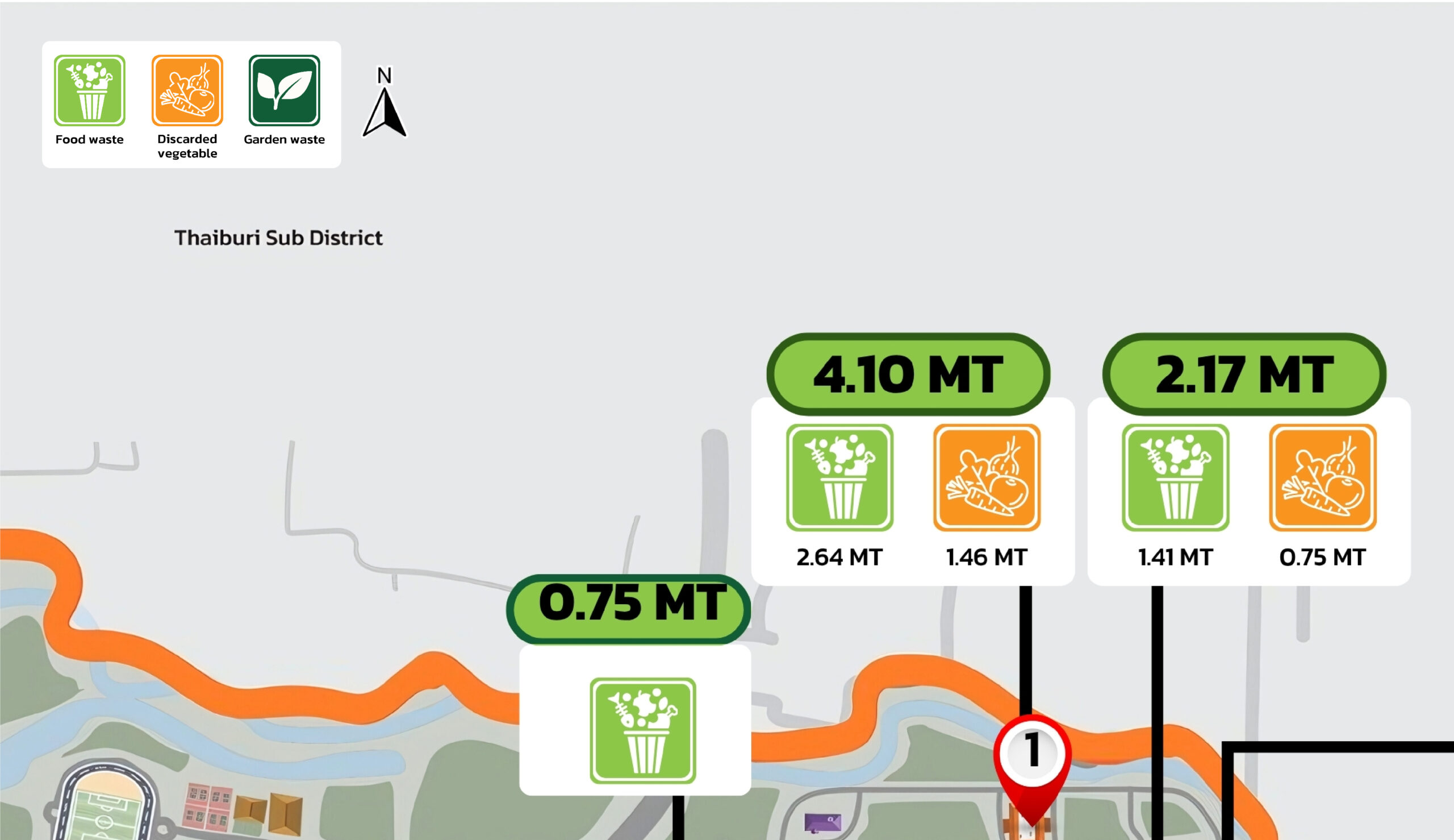 Figure 5 Map Depicting the Sources of Organic Waste within Walailak University