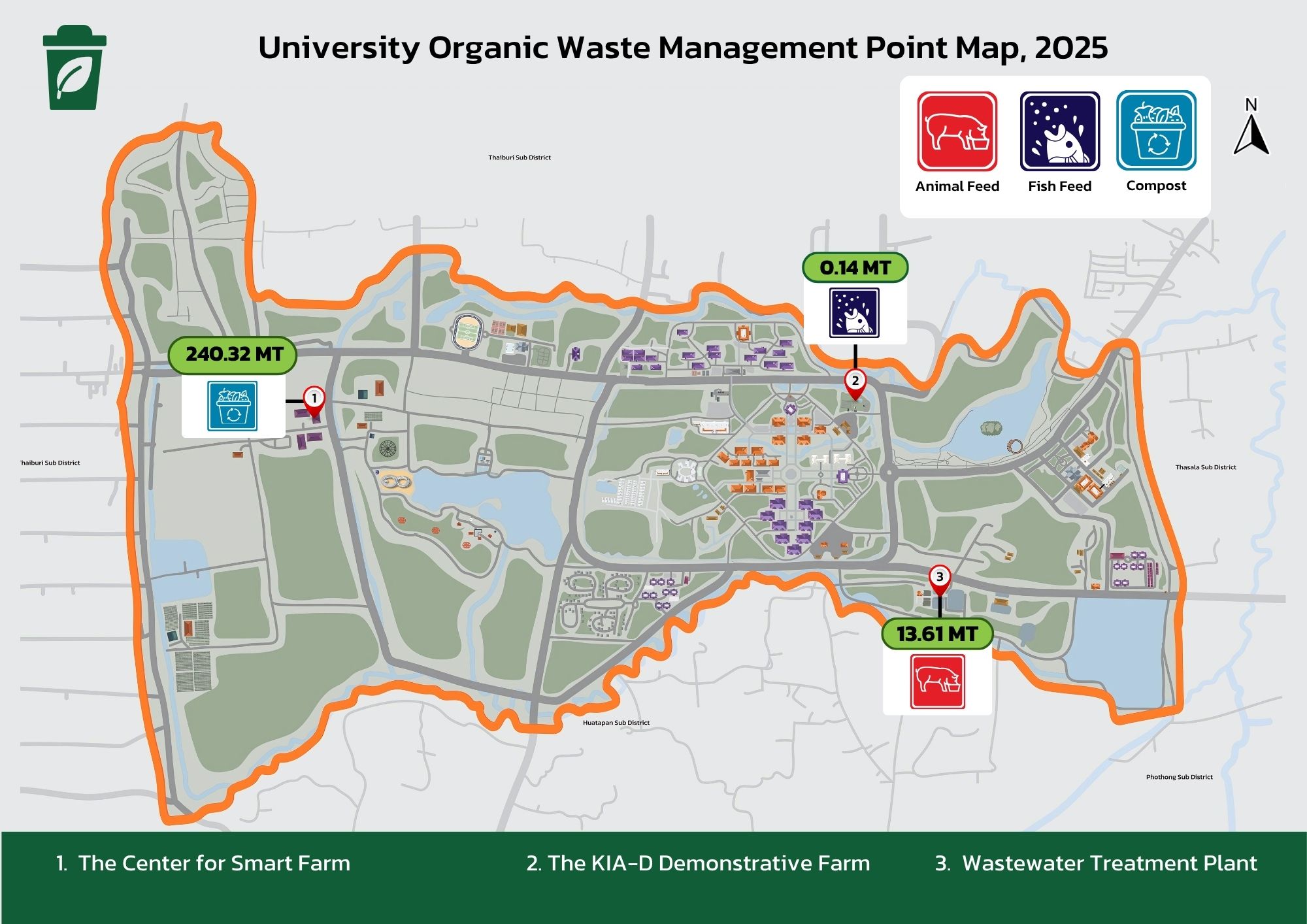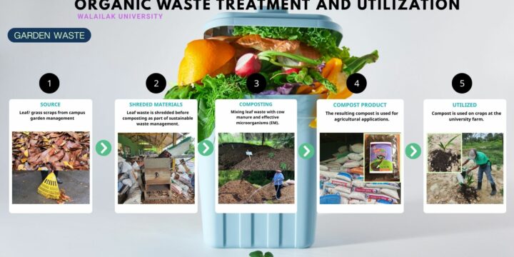 Overall, Walailak University’s organic waste treatment initiatives exemplify a holistic approach to sustainability. They integrate education, resource efficiency, and innovative practices while fostering continuous improvement. By transforming organic waste into valuable resources, the university not only minimizes environmental impacts but also establishes a model of sustainable resource management that can be replicated within the academic community.