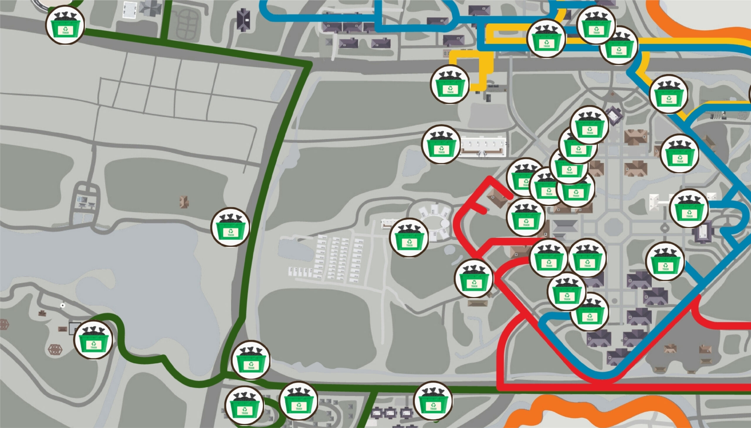 - Source Separation: Food waste is separated at the point of generation in collaboration with food vendors and staff, using green bins provided by the university.
