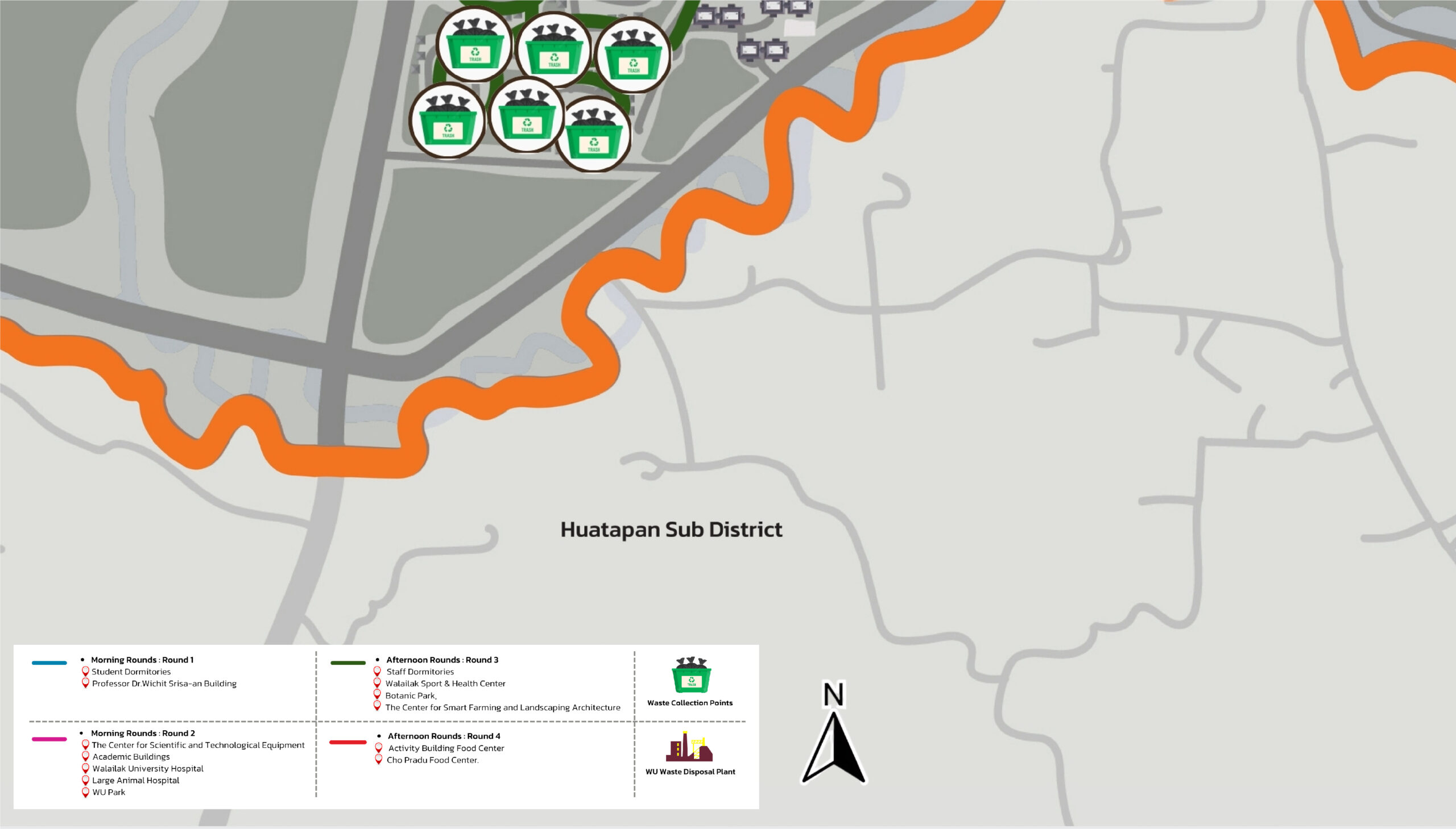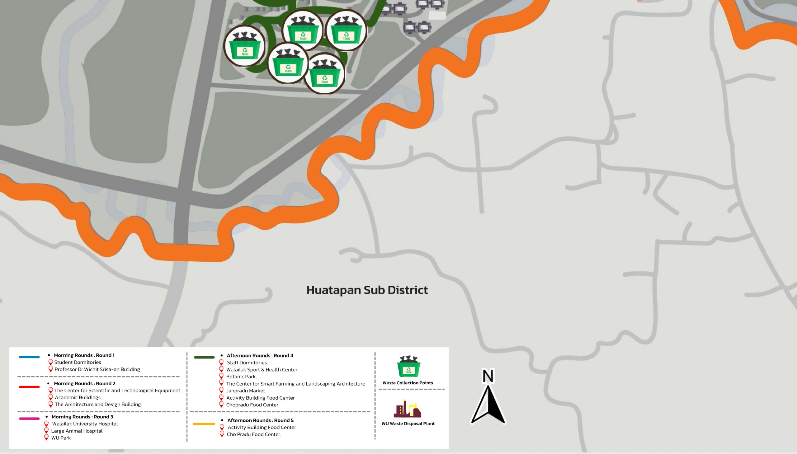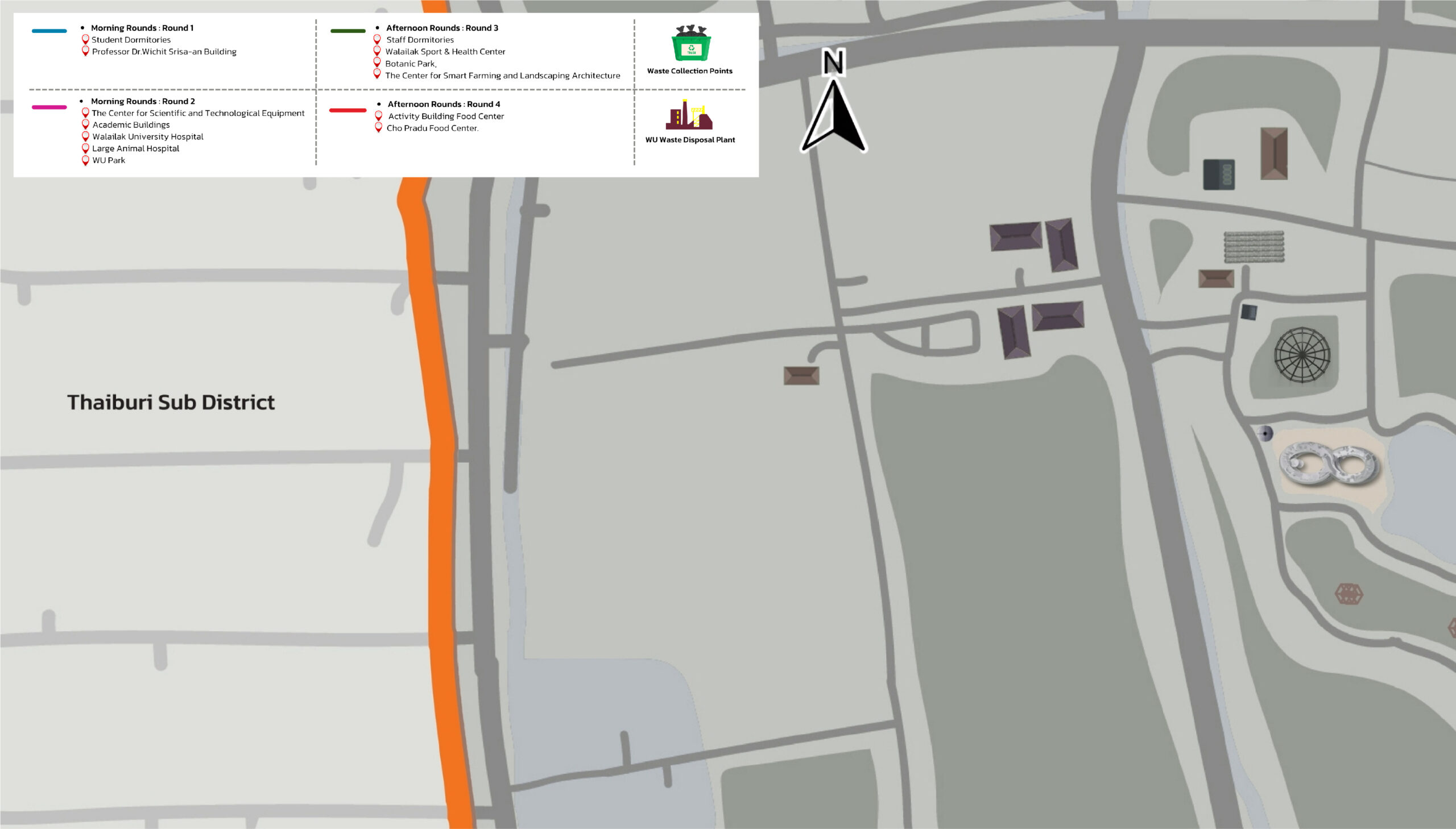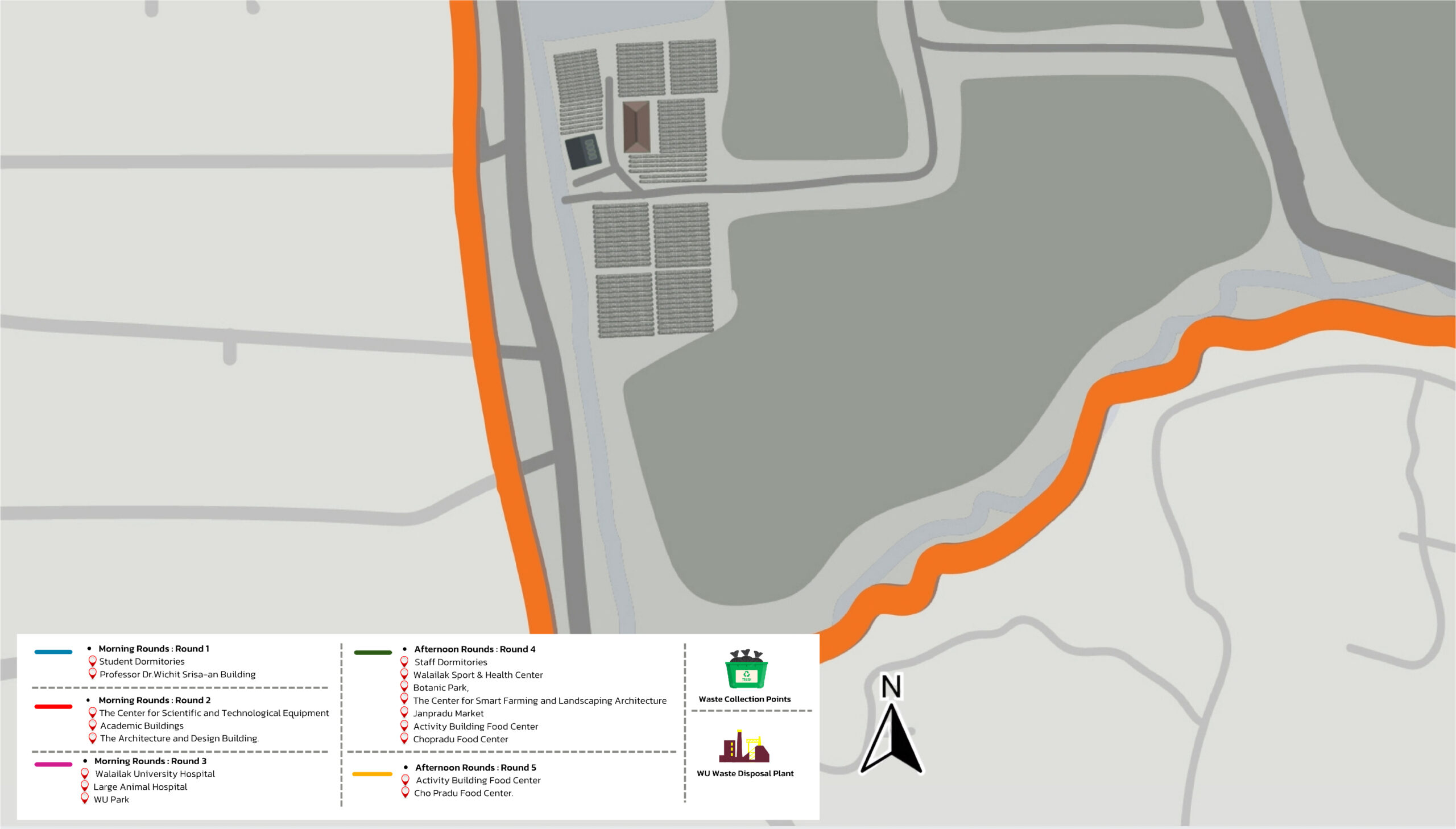 Figure 8.1 Map Depicting the Sources of Organic Waste within Walailak University