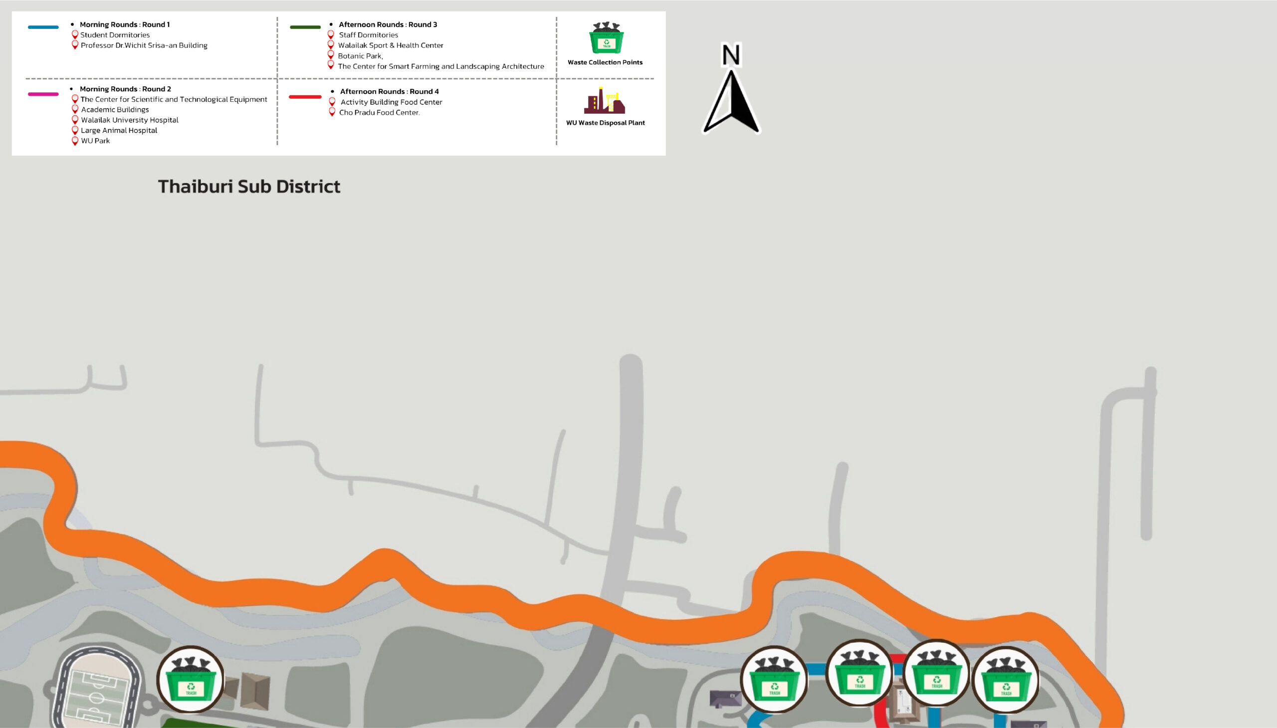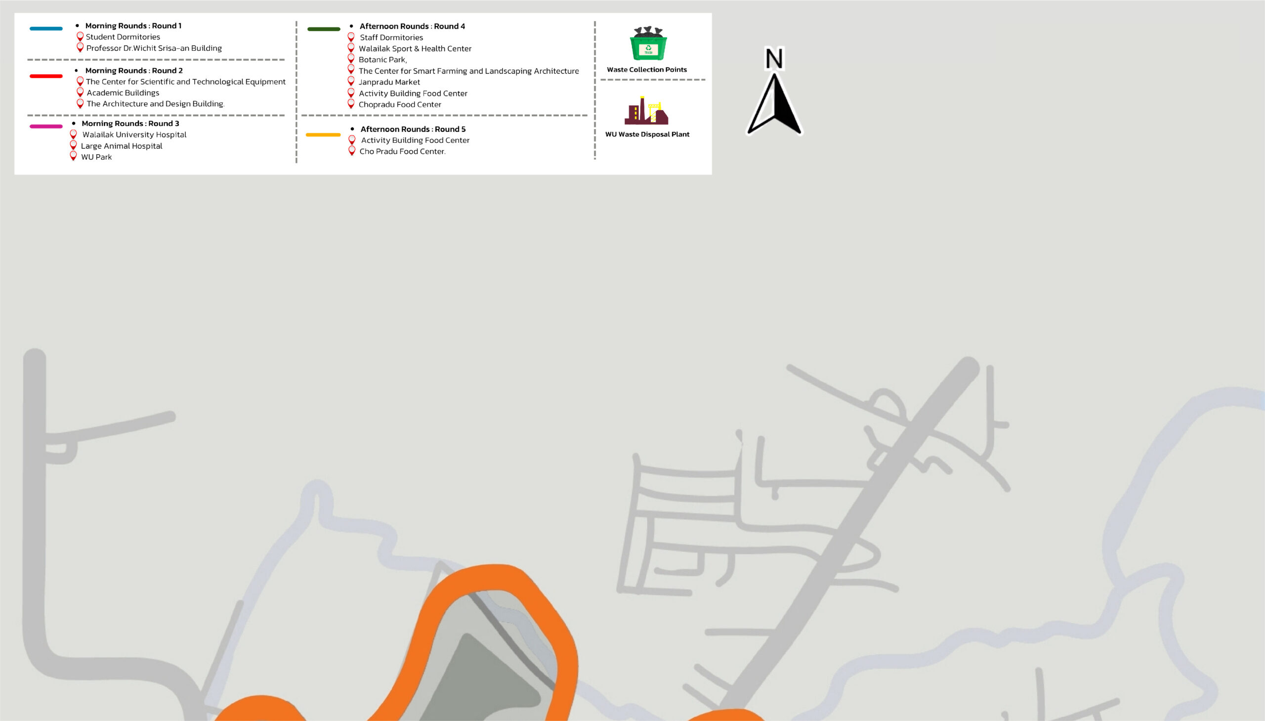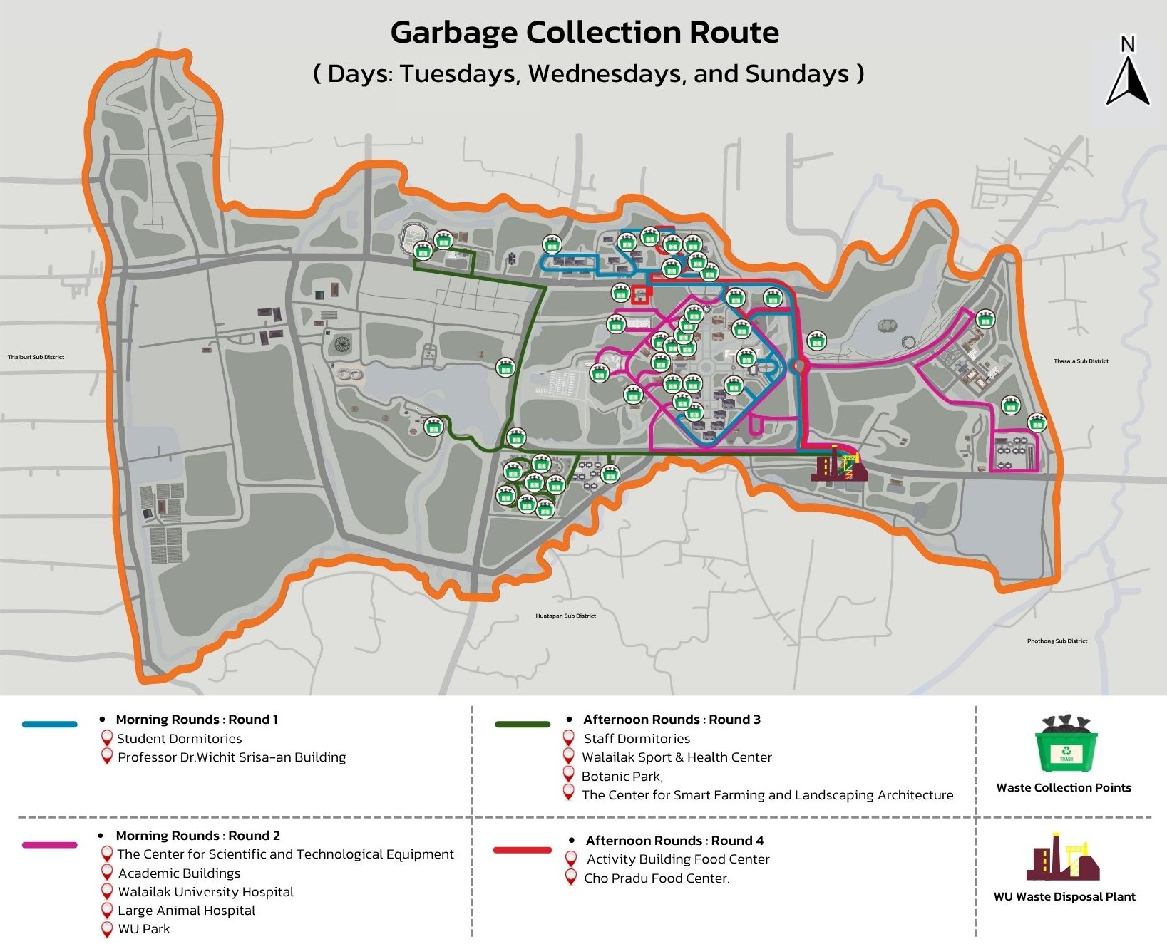 Figure 8.1 Map Depicting the Sources of Organic Waste within Walailak University