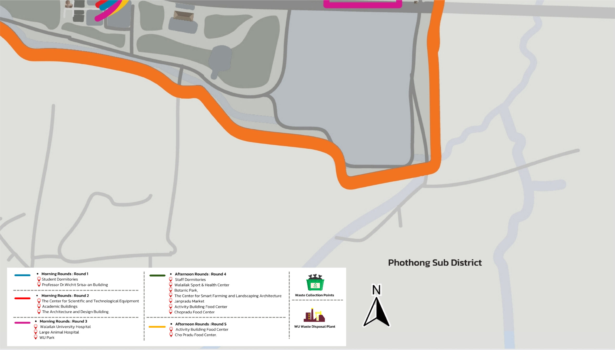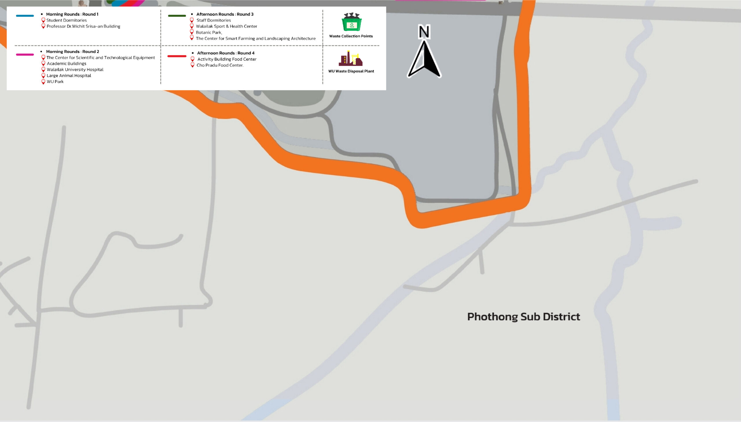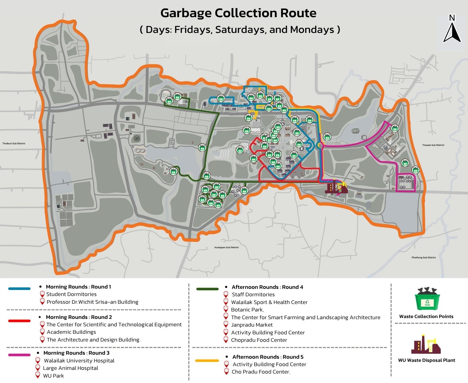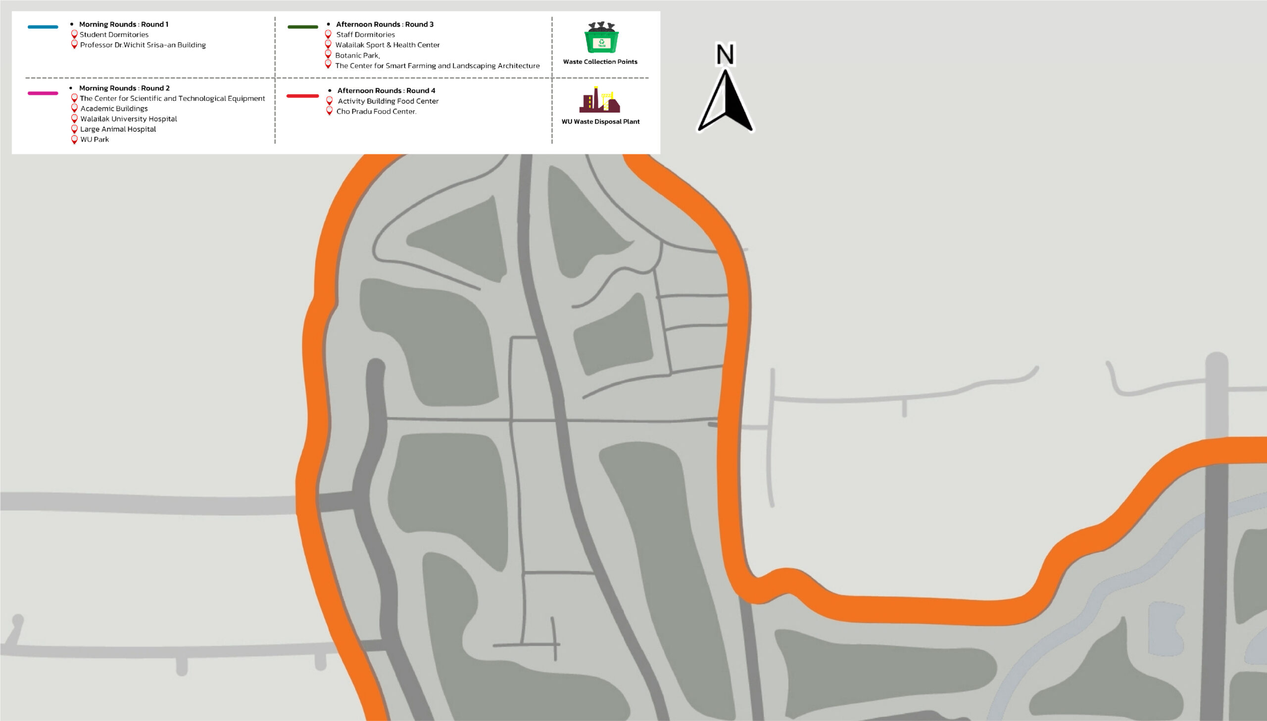 Figure 8.1 Map Depicting the Sources of Organic Waste within Walailak University